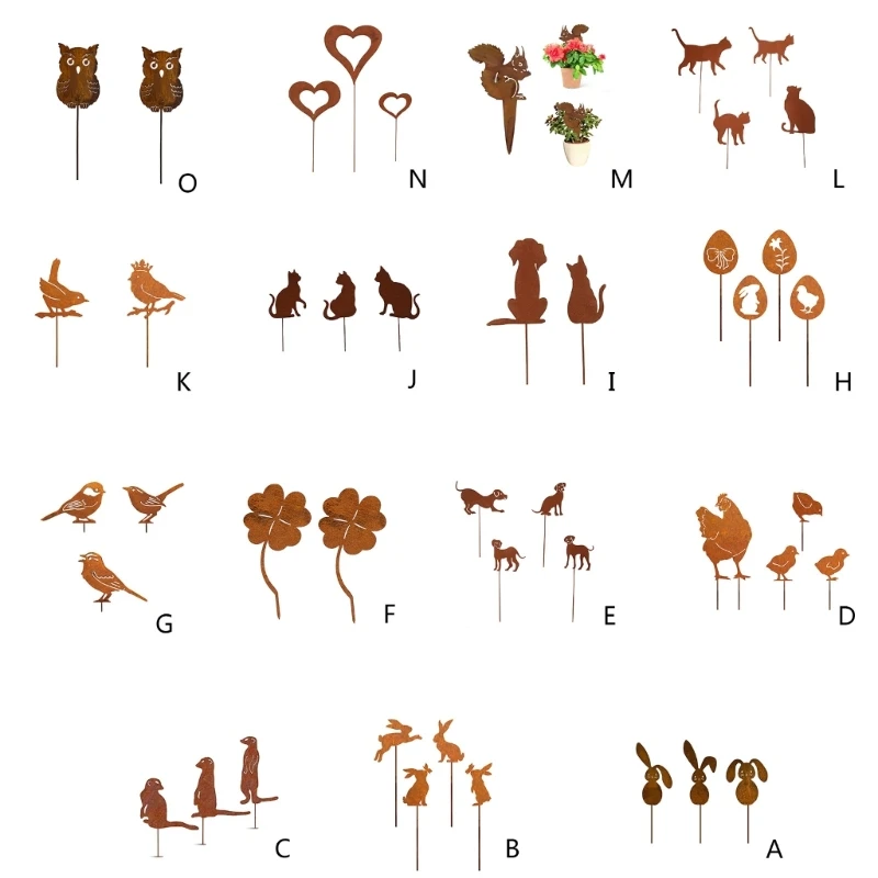 Largement Utilisés : Avec leur design à la fois classique et moderne, ces piquets de jardin rouillés sont parfaits non seulement dans le jardin, mais aussi à l'intérieur comme à l'extérieur, par exemple dans des vases, comme piquets de parterres, sur les terrasses, à l'entrée des maisons, dans les allées, près des points d'eau, sur les balcons ou dans les salons Tuteurs Métal Rouillé Style Vintage CHENBOOW Décoration Jardin,8 Pièces Decoration Automne 25cm Piquets Pour Massifs Fleurs Tuteur de Jardin Rouille : Lot de 8, d'environ 25 cm de long chacun. Un ensemble unique en rouille avec divers animaux de jardin aux formes attrayantes pour un aménagement paysager interactif. De légères rayures et perforations sont visibles sur les bords, grâce à un procédé spécial. Créez facilement une ambiance automnale unique Chaque motif est conçu avec soin et capture la magie de l'automne. Ils peuvent être facilement repositionnés pour créer différentes idées de décoration Ce lot de 8 oiseaux décoratifs en métal rouillé va donner plein de charme à ton jardin ! Chaque oiseau a une forme différente, avec un style rustique et... Design Unique : La rouille est saisissante avec son magnifique motif rouille uniforme à la surface, résistant au soleil. Un ensemble unique en rouille avec divers animaux de jardin aux formes attrayantes pour un aménagement paysager interactif. Fabriqués en métal robuste, ces tuteurs sont délicats et robustes pour une utilisation toute l'année. Piquets de jardin colorés pour décoration d'automne - 25 cm - métal - aspect rouille De légères rayures et perforations sont visibles sur les bords, grâce à un procédé spécial. Il suffit de les enfoncer dans le sol pour ajouter une touche de couleur à votre jardin ou balcon.