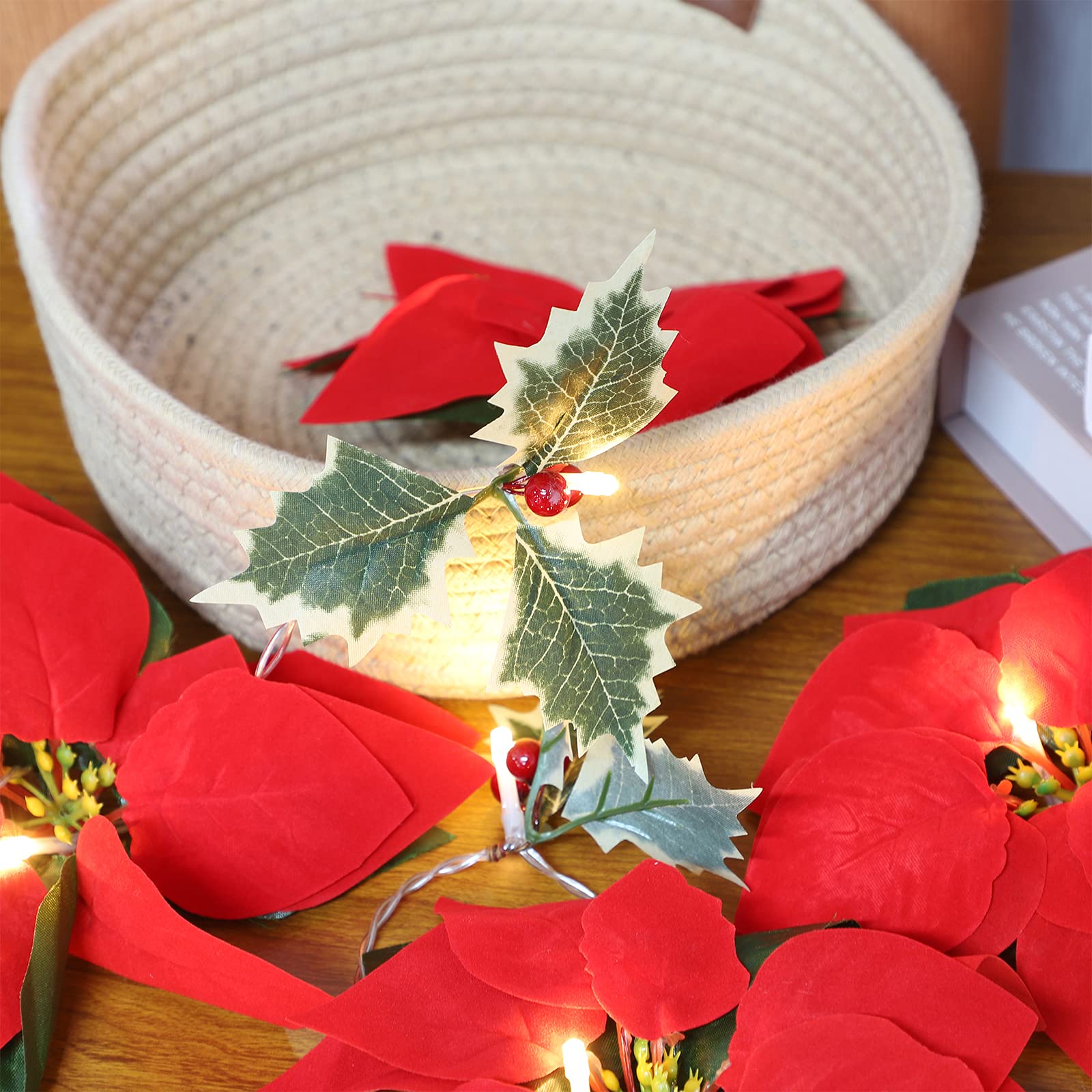 Superbe décoration d'intérieur. Matériau : les élégantes décorations de Noël sont faites à la main en tissus non tissés. Remarque : Les mesures étant prises à la main, les tailles indiquées peuvent varier légèrement., 2., En raison des différences dues à l'écran et à l'éclairage, la couleur de l'article peut être légèrement différente de celle de la photo. Contenu du paquet : 1 lampe de Noël en forme de fleur. Il contient 10 poinsettias rouges, 3 fruits rouges, 9 feuilles vertes et équipé de 10 lumières LED. Les pétales de poinsettia vibrants sont en velours rouge vif, ce qui rend votre chambre avec l'esprit des fêtes. Décoration Intérieur Extérieur Avec LED Guirlande De Poinsettia De Découpe De Vecteur Ou étoile De Noël Dans Guirlande De Fleurs Guirlande de poinsettia de Noël de 2,5 m avec 10 lumières pré-éclairées Design réaliste : cette guirlande est embrassée par une collection de fleurs de poinsettia séduisantes, composées de pétales de velours rouge. - La guirlande lumineuse en forme de fleur de Noël est parfaite pour la décoration de la maison, la décoration de vacances, les fêtes de famille, les mariages, les fêtes d'anniversaire, Noël, etc. Cette guirlande de poinsettia créera une ambiance joyeuse et confortable pour votre maison. Quelles guirlandes pour mon sapin de Noël ? Approchent enfin le temps de Noël et de ses festivités, ainsi que la joyeuse décoration du sapin de Noël et de la maison. Les guirlandes y sont toujours présentes, et la multiplicité de leurs formes et couleurs les rendent précieuses pour installer cette belle ambiance de fête Ne pas laisser les enfants jouer avec les piles. Il est parfait pour presque toutes les décorations, vacances ou célébrations. Fonctionne avec 2 piles AA (non incluses)., Dimensions : longueur : 2 m. Baie Noël Houx Guirlande, 180cm Noël Guirlandes Baies Houx Rouge Guirlande Deco avec Feuilles de... Guirlande de Noël : conçue pour décorer les couloirs avec ce classique de Noël intemporel. Occasion applicable : ces décorations de poinsettia et lumières LED sont des décorations de Noël populaires, adaptées à de nombreuses occasions, elles peuvent être appliquées sur votre sapin de Noël, fenêtres, cheminée, rampes d'escalier, murs et ainsi de suite, peuvent également être décorées dans votre jardin, bureau, cour, ajouter des couleurs et une sensation festive à votre espace Avertissement De Sûreté Lire attentivement les instructions de sécurité avant d'utiliser ce produit.