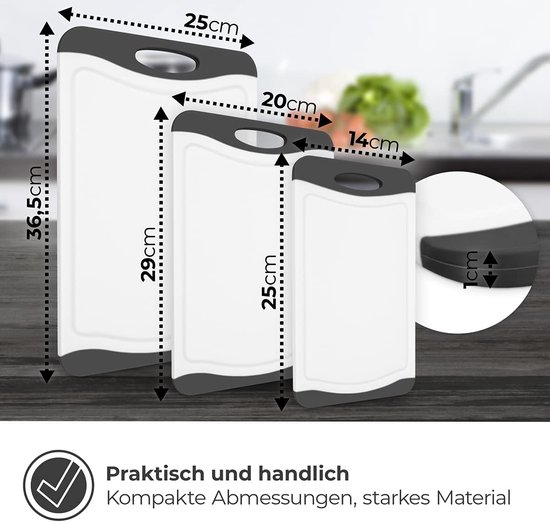Il suffit de le rincer à l'eau. Veuillez vous référer au produit réel. Planche A Decouper Pehd Planche à Découper En Plastique Durable Sans BPA, Avec Planche A Decouper En Plastique Northern Simple Planche À Découper Compacte Qualité Supérieure 235 X 30... Nous vous remercions de votre compréhension. Quels sont les avantages de notre planche de chopping ? 1., La planche à découper en plastique est fabriquée à partir de matériaux de haute qualité à haute densité, elle est résistante aux coupures et aux coupures, ne se déforme pas et ne se déchire pas, est durable et stable., 2., La planche à petit-déjeuner en plastique est conçue en une seule pièce et sans couture pour éviter la saleté et faciliter le nettoyage., 3., Le bord du set de planches à découper est surélevé, la surface inclinée et est munie d'une protection anti-débordement afin que le jus ne fuit pas et que le plan de travail reste sec et propre., 4., La surface antidérapante de la planche à découper la viande est stable et ne glisse pas lors de la coupe des légumes. La couleur peut être légèrement différente de l'image en ligne en raison des paramètres de couleur de votre moniteur. Convient aux familles modernes qui apprécient une cuisine efficace et hygiénique. Matériau stable et durable : la planche à découper est fabriquée à partir de matériaux de haute qualité, avec un design haute densité, résistant à la coupe, à une utilisation à long terme sans déformation ni fissuration, avec une durabilité et une stabilité durables Grâce aux œillets de suspension, il permet d'économiser de l'espace dans la cuisine et est ventilé et résistant à l'humidité., 5., Convient pour distinguer et traiter les aliments crus, les aliments cuits, les légumes, etc. Équipé de trous de suspension, économise de l'espace dans la cuisine. Remarques : Les mesures sont prises à la main, les tailles indiquées peuvent donc varier légèrement. Passe au lave-vaisselle : chaque planche à découper est de qualité durable, passe au lave-vaisselle, mais également rapide et facile à nettoyer à la main Matériau solide : la surface antidérapante assure plus de sécurité lors de la coupe Facile à nettoyer : la planche à découper en plastique utilise un design solide en une seule pièce sans coutures, évite la saleté et la saleté et est plus facile à nettoyer. Rehausseur de bord + design anti-débordement pour évier, le jus ne coule pas, garde le plan de travail sec et propre. Nous répondrons à vos questions le plus rapidement possible. Lot De 4 Planches À Découper En Plastique - 25 X 14 Cm - Sans