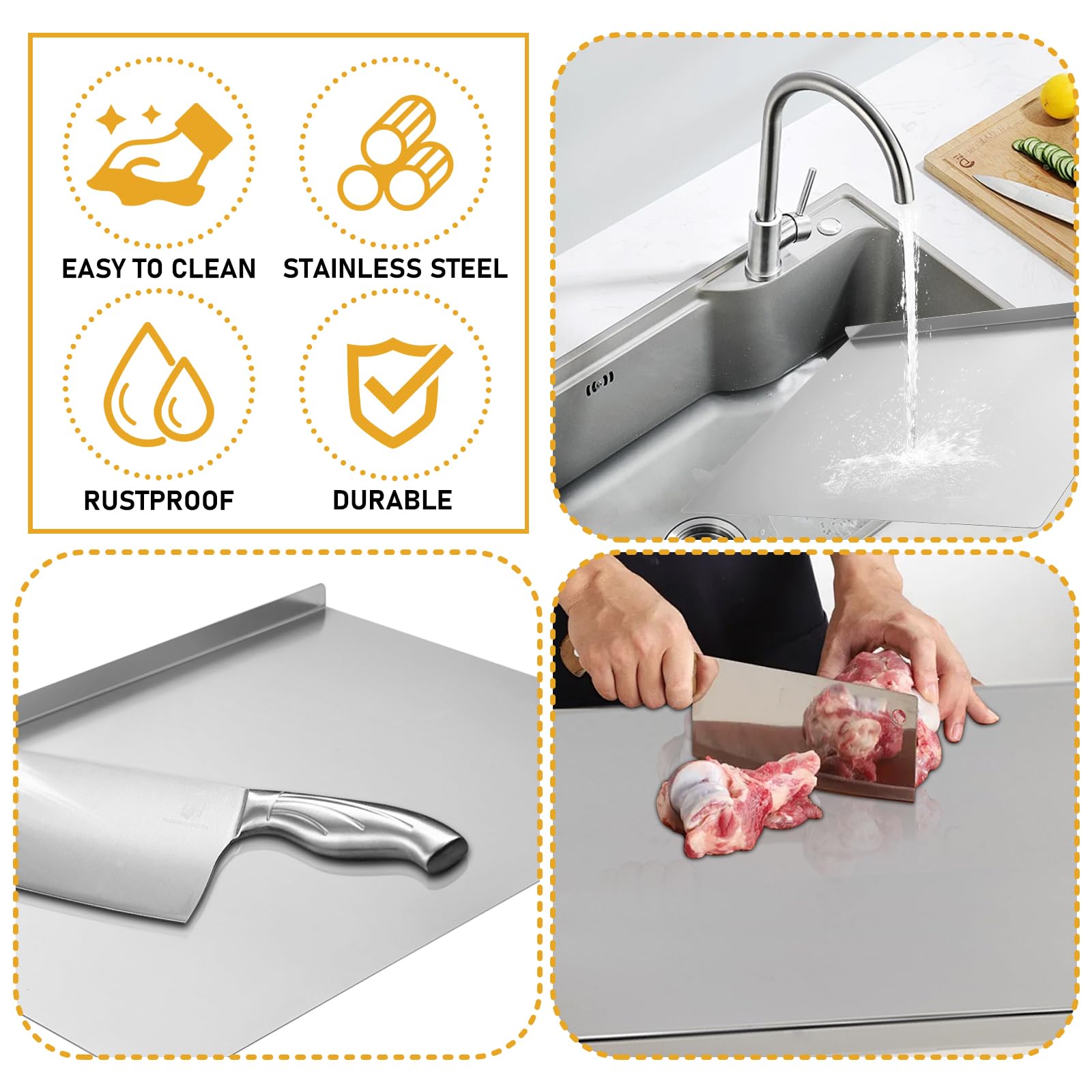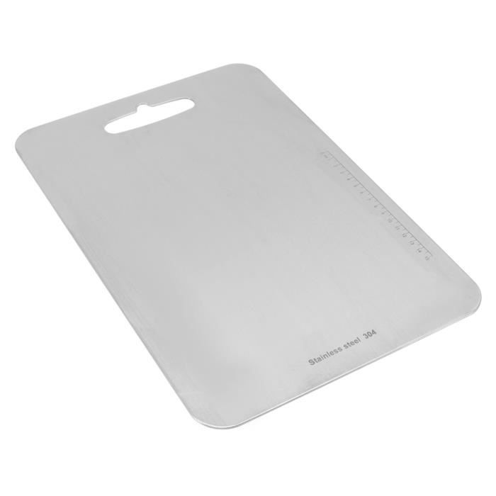 Plaque Inox Planche à Découper Robuste En Acier Inoxydable Pour La Cuisine Planche à Découper épaisse Sıcak satış 304 gıda sınıfı paslanmaz çelik kesme tahtası mutfak bulaşık makines Hililand Planche à découper de cuisine Planche à découper double face... * Utilisation double face : il peut être utilisé séparément pour éviter les infections croisées de différents aliments (légumes, fruits, aliments crus, aliments cuits, etc., ). *Matériau : acier inoxydable. * Cadeau parfait : il peut être offert en cadeau à votre famille ou vos amis et rendre votre famille plus saine. Caractéristiques : * Cadeau parfait : il peut être offert en cadeau à votre famille ou vos amis et rendre votre famille plus saine. *Nom de l'article : planche à découper *Matériau : acier inoxydable *Taille : Contenu : 1 planche à découper Planche à découper en acier inoxydable 304 (40 x 30 cm), planche à découper robuste pour viande, fromage, légumes, fruits, pâtisserie, planche à découper avec bords arrondis, peut protéger la table