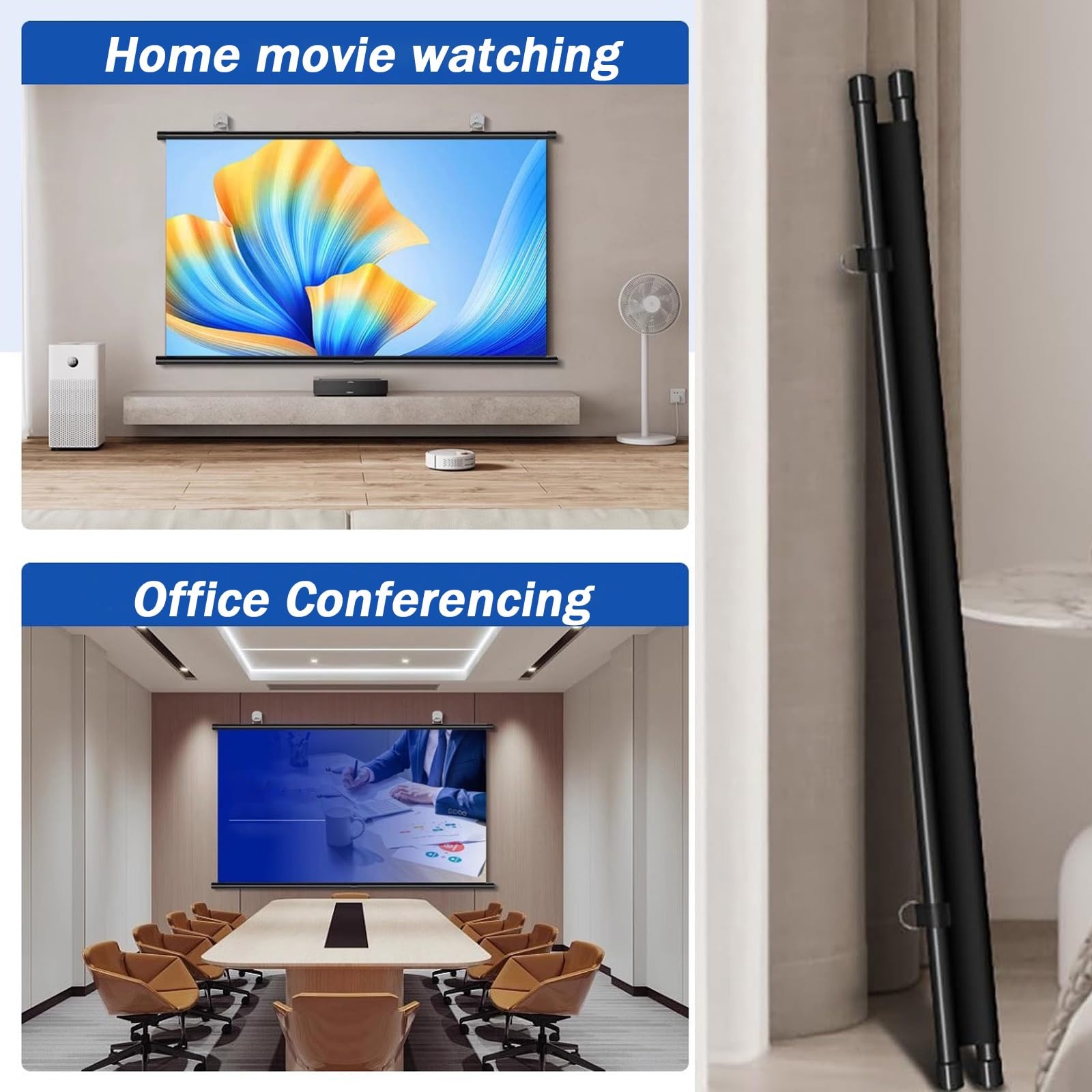 Deux méthodes d'installation: perforable/montable au murLe forfait comprend1 x écran de projection + accessoires de montageRemarque : 1., Environnement d'utilisation des crochets adhésifs : les crochets adhésifs ou les crochets à ventouse peuvent être utilisés sur le verre, les carreaux de céramique, les murs en bois non gras, le marbre et d'autres matériaux., 2., Il n'est pas recommandé de l'utiliser sur des murs ou des papiers peints qui deviendront poussiéreux. Sélection de matériaux de haute qualité : fabriqué en PVC de haute qualité avec un gain de +2,5, ce qui contribue à augmenter la luminosité et à améliorer la capacité de voir clairement les images. Visualisation large à 178°: offrant un angle de vision large jusqu'à 178° et une surface blanche mate de haute qualité, vous et votre famille pouvez choisir un siège et une position confortables for profiter de soirées cinéma sans vous presser devant l'écran. Deux rapports, à choisir en fonction de l'utilisation: le rapport rectangulaire 16:9 convient à un usage domestique et le rapport carré 4:3 convient à un usage de bureau. Écran de projection mobile - Achat en ligne Il est recommandé d'utiliser des clous non marquants for clouer ces murs dans le mur, qui est plus stable., Choses à noter1., En raison des différences dans les effets d'éclairage et les moniteurs, la couleur du produit réel Différentes tailles d'écran sont disponibles for répondre à vos besoins. Écran de projection portable 4K: Tailles variées, format 16:9. - Test... Projection mobile portable : cet écran de projection portable est pratique et léger et peut être facilement enroulé for économiser de l'espace. Écran de projection extérieur déroulant 16:9 HD écran de projection pliant home cinéma portable écran de cinéma intérieur et extérieurL'écran de cinéma vous offrira une expérience de cinéma maison et vous pourrez également profiter de l'expérience de jeu ultime avec vos amis ou votre famille. De plus, une doublure noire à l’arrière de l’écran aide à contrôler les interférences lumineuses indésirables, offrant ainsi une expérience visuelle sans distraction. écran Videoprojecteur Deroulant Écran De Projection Portable, Ecran De Projection 30" , 40" , 50" , 60" , 72", Style Coulissant Enroulable Manuel, Rideau De Projection Pratique 16:9 Montable Au Mur Pour Intérieur Et Extérieur(16:9,7 écran Mural Intérieur Extérieur Écran de projection portable et pliable. - Test et Avis Vous pouvez choisir entre les formats d'image 16:9 et 4:3, 16:9 peut apporter une expérience home cinéma époustouflante et 4:3 peut être utilisé for l'enseignement/réunions de projection sur écran d'ordinateur/pages Web/présentations.