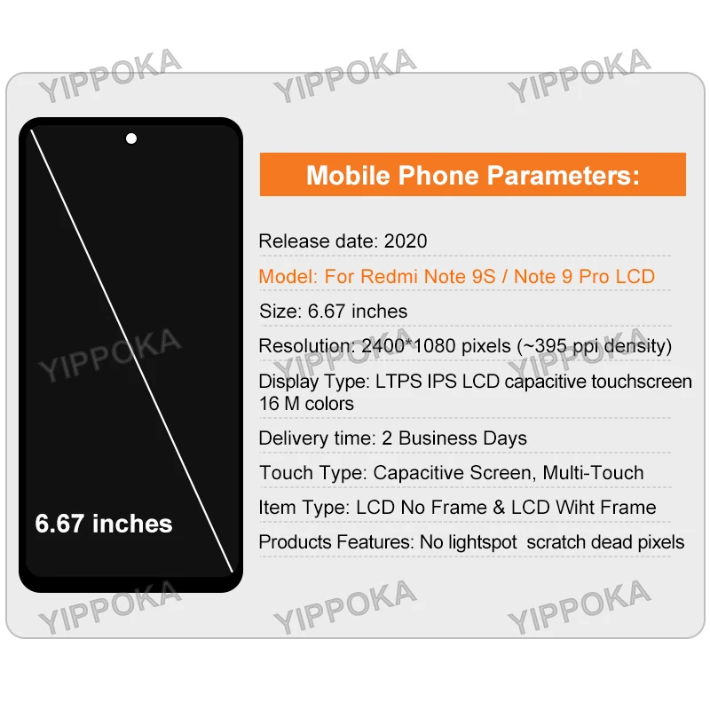 Avant que le produit ne soit livré, un test de fonctionnement est effectué, de sorte que vous n'avez pas à vous soucier et que vous puissiez effectuer l'installation. Il est fortement recommandé de regarder les vidéos avant de procéder à l'installation pour éviter les dommages causés par une mauvaise utilisation. Modèles compatibles : Ce kit d'écran est parfaitement compatible avec le Redmi Note 9 PRO avec une diagonale d'écran de 6,67 pouces, les modèles M2003J6A1G M2003J6B2G. Ceux-ci doivent être retirés de l'ancien écran et transférés. Nous vous fournirons une solution dans les 24 heures. Chaque écran est soigneusement testé à 100 % par notre équipe d'assurance qualité professionnelle avant la livraison pour garantir la fiabilité de la qualité. Compatibilité précise : ce jeu d'écran LCD est uniquement compatible avec l'écran Incell Xiaomi Redmi Note 9S (modèles : M2003J6A1G M2003J6B2G). Étant donné que le matériau de l'écran est relativement sensible, veuillez être prudent lors du remplacement. En stock ! Réparez facilement votre Xiaomi Redmi Note 9 Pro ou 9S ! Nous proposons des écrans LCD tactiles de haute qualité, parfaitement compatibles avec votre modèle. Profitez d'une résolution 2400x1080 pixels sur un écran IPS de 6.67 pouces. Chaque écran est rigoureusement testé avant expédition pour une performance optimale Si vous avez des questions lors de l'installation ou de l'utilisation, n'hésitez pas à nous contacter à tout moment. Veuillez noter que ce produit ne contient pas de caméra frontale, d'écouteurs et de capteur de proximité. Instructions Reparo pour remplacer l'écran LCD de haute qualité pour Redmi Note 9 Pro., I. Xiaomi Redmi 9 - Spécifications complètes Si vous n'êtes pas sûr du modèle compatible, vous pouvez nous contacter via Amazon. N'oubliez pas de mémoriser la position initiale de chaque vis et de la fixer à sa place d'origine. Cette étape est de la plus haute importance., 5., Vérification du câble flexible : avant d'installer, veuillez vérifier attentivement l'état du câble flexible de l'écran LCD pour vous assurer qu'il n'y a pas de dommages ou d'irrégularités de flexion et qu'il n'y a pas de résidus d'éclats ou de poussière sur l'interface pour éviter les interférences dans l'utilisation normale de l'écran en raison de problèmes avec le câble flexible., III. 【Service après-vente courtois】 : lorsque vous achetez nos produits Reparo, vous recevrez un écran LCD pour l'écran LCD Redmi Note 9 PRO ainsi qu'un ensemble d'outils d'installation. 【Garantie de qualité】: Un écran de haute qualité spécialement conçu pour l'écran Xiaomi Redmi Note 9S, avec une luminosité élevée et une fonction tactile 3D sensible. Bildschirm Für Xiaomi Redmi Note 9 Pro Bildschirm Ersatz Für Redmi Note 9S LCD-Bildschirm M2003J6A1G, M2003J6B2G Touch Display Digitizer Montage Reparaturteile... écran Xiaomi Remplacement écran LCD 9S Écran LCD Pour Xiaomi Redmi Note 9 Pro/9S - Assemblage écran Tactile + Outils Redmi écran LCD Redmi Note 9S Chaque écran est soigneusement testé avant la livraison pour s'assurer qu'il fonctionne de manière stable et excellente sur votre appareil après l'installation. Nous offrons un service après-vente professionnel pour la substitution de l'écran. Avant l'installation, il est recommandé de regarder les vidéos tutoriels d'installation pertinentes sur YouTube ou de contacter un professionnel pour assurer une installation en douceur., 2., Éteindre l'appareil : avant d'installer le nouvel écran, veuillez absolument déconnecter la batterie.