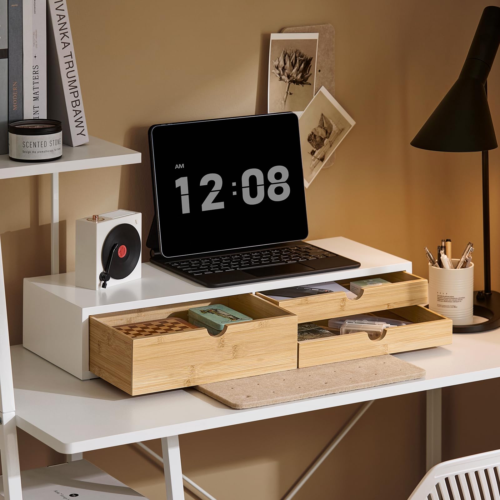 Support De Moniteur Avec Tiroir De Rangement, Hauteurs Rehausseur Pour... Idéal pour : pratique pour zones de travail compactes, ce support vous aide à tirer parti de votre espace de bureau tout en restant organisé, étagère de bureau pour l'organisation, support pour ordinateur portable pour lit Élévation de l'ordinateur portable : surélevez votre ordinateur portable pour améliorer refroidissement et la durée de vie, garantissant des performances optimales, support de moniteur ergonomique, organisateur de bureau à Support Moniteur Support Ergonomique écran 2 Niveaux HSJYFSH - Avec Tiroir Organisateur Bureau Bois Support Pc Avec Tiroir Optimisation de l'espace : maximisez l'espace de votre bureau avec ce support polyvalent, conçu pour garder votre espace de travail organisé et efficace, support d'écran pour bureau, étagère de bureau Principaux points forts · Couleur. Blanc · Marque. Gatuida · Poids de l'article. 640 Grammes · Dimensions de l'article L x l x H 50 x 19 x 11,6 centimètres Optimisation de l'espace : adapté aux de travail, ce support vous aide à tirer parti de votre espace de bureau tout en restant organisé, support pour ordinateur portable pour bureau, support pour ordinateur portable réglable BONTEC Support Moniteur avec Tiroir, 3 Hauteurs Réglables, Rehausseur