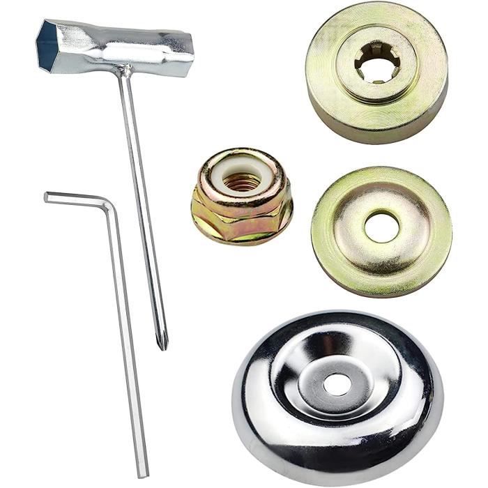 Il remplace les pièces usées de votre outil et maintient fermement la lame sur l’axe de coupe pour éviter les glissements ou détachements pendant l’usage. Kit de fixation complet pour débroussailleuse: Cet universelle kit fixation écrou lame boîte comprend 5 éléments essentiels : une plaque de protection, deux rondelles de pression, un écrou M10 LH et une clé en L. Compatibilité avec de nombreux modèles: Idéal pour la majorité des têtes de débroussailleuse, ce kit s’adapte aux systèmes à 6 dents et garantit une fixation stable. Matériaux :Métal traité contre l’oxydationSurface résistante à l’usure mécaniquConvient aux usages fréquents en extérieurFonction principale :Ce kit universel permet une fixation rapide et fiable des lames sur les débroussailleuses, tondeuses ou trimmers. YUET 6 Morceaux Kit Ecrou Tete Debroussailleuse Universelle Kit Il garantit un bon maintien de la lame dans des conditions variées : coupes d’herbes, petits arbustes, bordures de pelouse, etc. L’écrou de fixation M10 LH est une taille standard pour de nombreux outils de jardinage motorisés. 5pcs kit ecrou Tete debroussailleuse Universelle, pour Stihl, Echo, Ryobi Tete, Kit De Fixation D'écrou De Lame De Gearbo En Métal Pour Tondeuse à Gazon... Construction solide en métal: Chaque élément de ce kit est fabriqué en métal robuste et anticorrosion pour assurer durabilité et efficacité. Nom du produit :Kit de 5 pièces fixation écrou lame boîte pour débroussailleuseCouleur :Métal argentéQuantité :1 lot contenant 5 composantsContenu du kit :1 plaque de protection1 rondelle de retenue1 disque de pression1 écrou M10 filetage LH (gauche)1 clé en L (outil de montage)Taille / Compatibilité :Compatible avec la majorité des débroussailleuses à tête 6 dents. Parfait pour installer ou remplacer les têtes de coupe sur les débroussailleuses avec connexion 6 dents. Plaque Protection Rondelle Clé L écrou Tete Debroussailleuse Kit D'écrous De Rechange Pour Sécateur Électrique 830B Embout Visseuse A Choc Rondelle Pression Le kit d'adaptation pour débroussailleuse contient une plaque de support (77,5 mm), une rondelle de protection de la plaque de support (45 mm), un écrou à collet (21,5 mm), une rondelle de support (45 mm), une clé en L (110 mm). Avant d'acheter les lames, vérifiez la taille de vos pièces d'origine Cela améliore la vitesse de coupe et réduit l’usure de l’appareil lors d’une utilisation prolongée.