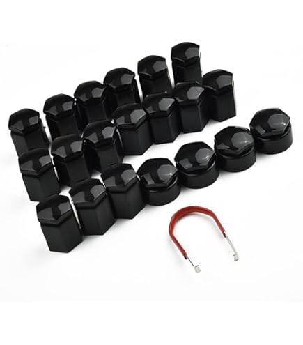 Lot de 20 cache-écrous noirs tête 19 mm en blister pas cher Les couvercles sont conçus pour s'adapter aux écrous de 17 mm, pour un ajustement sûr et confortable. Cache Ecrou Senyar Lot De 20 Cache-écrous De Roue De Voiture De 19 Mm Avec Outil De Protection écrous Roue Noir Couleur noire et taille de 17 mm : ces cache-écrous de roue sont disponibles en noir, ajoutant une touche élégante et moderne à l'apparence de votre véhicule. Protégez et améliorez l'apparence des boulons de roue de votre véhicule avec ces capuchons d'écrous de roue de voiture de haute qualité, fabriqués en nylon PA66 durable pour une résistance et une fiabilité durables Thpeakcr Lot de 20 cache-écrous de roue noirs copatibles avec... Améliore la protection et l'esthétique : ces cache-écrous de roue offrent non seulement une protection supplémentaire à vos écrous de roue contre la poussière et la saleté, mais améliorent également l'esthétique générale de votre véhicule. Compatible avec différents modèles : ces coques sont compatibles avec les modèles Insignia B (2017-, Astra J et K (2009-2020), Mokka (2012-2020), Meriva B (2010-2020) et Zafira C (2011-2020). Améliorez votre style avec ces housses fonctionnelles et de qualité supérieure. Boulons de 19 mm et boulons de verrouillage : les cache-écrous de roue sont livrés avec 16 cache-écrous hexagonaux et 4 cache-écrous de verrouillage ovales, offrant une solution complète pour vos roues. Ils sont spécialement conçus pour correspondre aux spécifications de ces véhicules. Ne convient pas aux véhicules avec boulons de 17 mm.