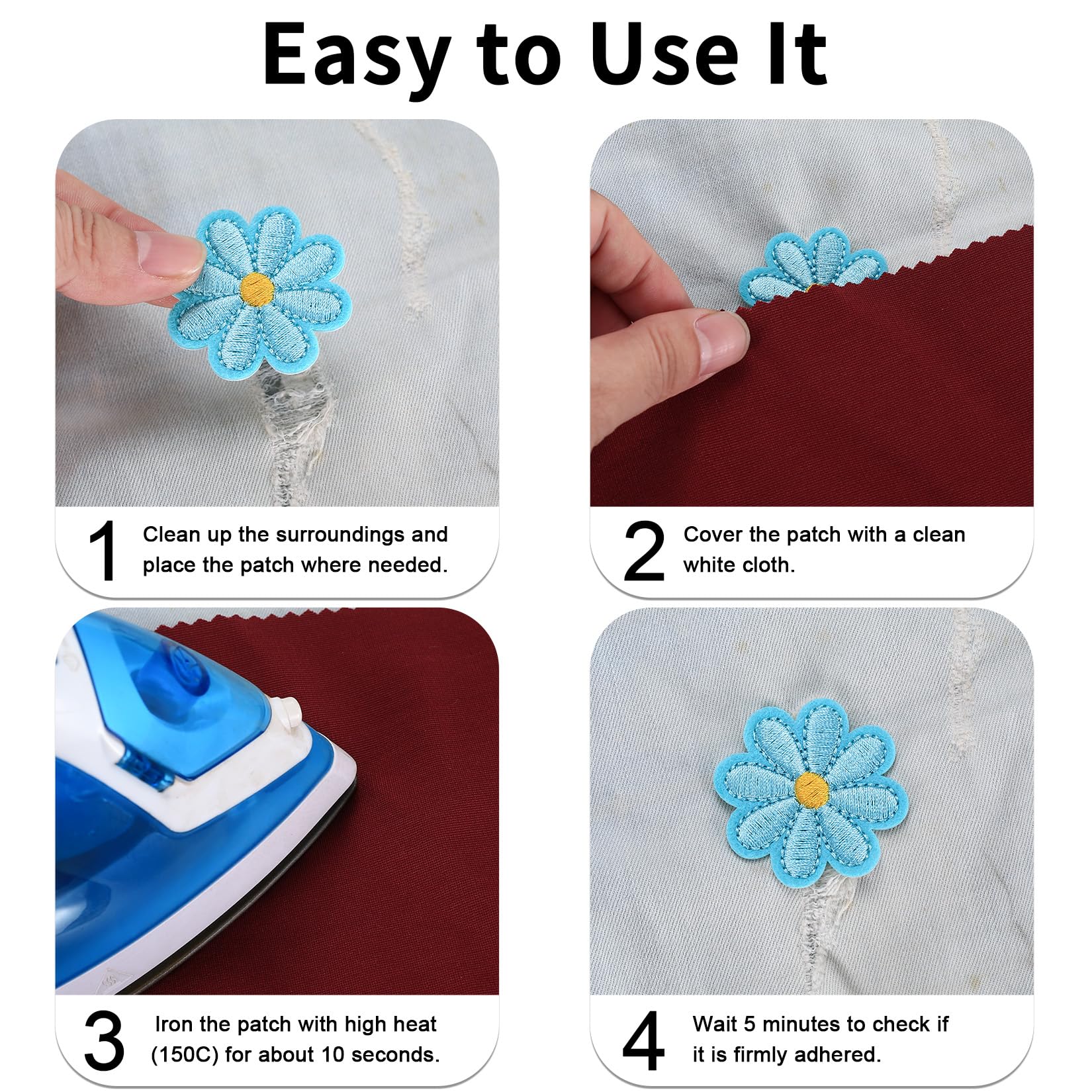 Ecusson Marché aux fleurs 5 pétales 42 mm | La Droguerie Les écussons thermocollants brodés en forme de fleurs sont soigneusement brodés avec des détails clairs et des couleurs vives qui garantissent un aspect attrayant et une longue durée de vie. Lot 14 écussons Personnalisation Joynaamn Lot De 14 écussons Thermocollants Pour Vêtements, Petits écussons Brodés à Motif Floral Pour Vestes, Jeans, Sacs à Dos, Chapeaux, Fleurs Assorties écusson Brodé à Repasser Cette riche sélection permet de personnaliser différents vêtements ou accessoires. 126 -Patchs brodés d'animaux sauvages pour vêtements,autocollants... R98 Lot de 27 écussons brodés Thermocollants et à coudre Accessoire DIY... Conception pratique : ces patchs à repasser sont parfaits pour réparer les zones endommagées sur les vêtements ou pour embellir les textiles. Facile à repasser : chaque écusson thermocollant en forme de fleur dispose d'une colle chaude à l'arrière. Ils peuvent non seulement être appliqués sur des pantalons, des jeans et des chemises, mais aussi sur des chapeaux, des sacs et d'autres accessoires pour les personnaliser et ajouter une touche de fraîcheur et de beauté. Lot de 14 patchs à fleurs : vous recevrez 14 écussons brodés à repasser en forme de fleurs dans différents motifs et tailles (de 1,9 cm à 4,5 cm). Ils peuvent être fixés facilement et rapidement sur des pantalons, jeans, chapeaux, chemises et autres surfaces textiles sans avoir besoin de beaucoup de temps ou d'outils spéciaux. Taille du produit : voir l'image de la liste (dimensions de 1,9 x 1,9 cm à 4,5 x 3,5 cm).