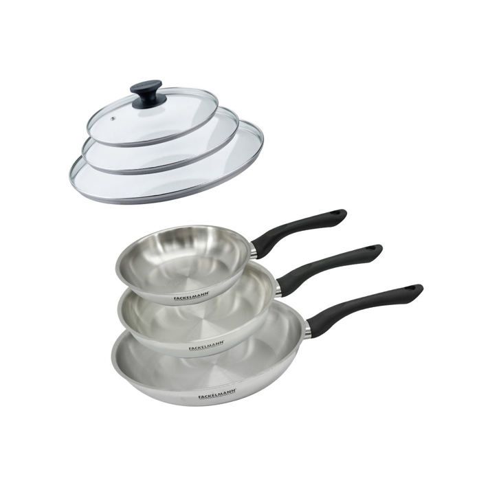 Design élégant et manche ergonomique en bakélite pour une prise en main confortable. Culottage recommandé avant la première utilisation. DIMENSIONS: Poêle 20 H 4,8 Fond 14,4 Manche 17 ; Poêle 24 H 6 Fond 18,1 Manche 19 ; Poêle 28 H 6 Fond 20 Manche 19 ; Casserole 12 H 6,5 Fond 10,8 Manche 15,5 ; Casserole 16 H 8,5 Fond 14,5 Manche 18 ; Casserole 20 H 10,5 Fond 18,3 Manche 18 Les poêles de cuisson offrent une conductivité thermique et une résistance aux rayures et à la corrosion optimales. Ensemble De 2 Poêles De Cuisson 24 Et 28 Cm Et 3 Faitouts 12, 16 Et 24 Cm Elo Prima Brillant Passent au lave-vaisselle, garantie 3 ans. Polyvalents, ils sont compatibles avec tous les types de feux, y compris induction, et résistants au four jusqu'à 150°C. La Moustache - Set de 3 Poêles de 20, 24 et 28 cm, Set Antiadhésif en Alm e e, Sans PFOA, Léger... ENTRETIEN: Nécessite un culottage avant la première utilisation ; facile à entretenir, passe au lave-vaisselle DESCRIPTION: Batterie Fackelmann Geneva de 3 poêles de 20 24 et 28 cm et 3 casseroles de 12 16 et 20 cm en inox 18/8, parfait pour vos préparations culinaires pour 1 à 5 personnesPETIT +: Design ergonomique des manches en bakélite ; casseroles avec échelles de mesure et bec verseurCOMPOSITION: Acier inoxydable 18/8, résistant aux rayures et à la corrosion, sans PFASDIMENSIONS: Poêle 20 H 4,8 Fond 14,4 Manche 17 ; Poêle 24 H 6 Fond 18,1 Manche 19 ; Poêle 28 H 6 Fond 20 Manche 19 ; Casserole 12 H 6,5 Fond 10,8 Manche 15,5 ; Casserole 16 H 8,5 Fond 14,5 Manche 18 ; Casserole 20 H 10,5 Fond 18,3 Manche 18UTILISATION: Convient pour tous types de feux, y compris induction, et résiste au four jusqu'à 150°CENTRETIEN: Nécessite un culottage avant la première utilisation ; facile à entretenir, passe au lave-vaisselleCette batterie de cuisine complète Fackelmann Geneva répond à tous vos besoins en cuisine, en famille ou entre amis pour 1 à 5 convives. Induction : le diamètre du fond du récipient doit est égal au diamètre de la zone de cuisson, sinon la plaque peut ne pas le reconnaître. Poêle Inox Promo Set "délice" : 2 Poêles ø 24 Et 28 Cm + 2 Casseroles ø 18 Et 20 Cm + 1 Manche Amovible Poêles Casseroles Induction Lot de 3 cercles à tarte en inox - 20, 24 et 28,4 cm |Féerie Cake UTILISATION: Convient pour tous types de feux, y compris induction, et résiste au four jusqu'à 150°C