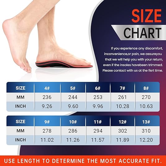 Coussinet de soutien de la voûte plantaire orthopédique pour douleurs... SOULAGEMENT DE LA FASCIITE PLANTAIRE ET DES DOULEURS AUX PIEDS : Les semelles aident à prévenir les pathologies du pied et sont idéales pour les problèmes associés à la fasciite plantaire car elles soutiennent les arches longitudinale et transversale du pied, réduisant le stress sur les pieds et la colonne vertébrale CHOISISSEZ ATTENTIVEMENT LA TAILLE : Nos semelles pour fasciite plantaire sont disponibles dans une gamme de tailles pour s'adapter à la plupart des pieds. Soutien Voûte Plantaire 3.5 Cm Semelles Orthopédiques Pour XO-Jambes Correction Semelles Orthopédiques Pied Plat Soutien De La Voûte Plantaire Coussinet Fasciite Plantaire Soulagement De La Douleur Inserts De Chaussures Semelles Pour Pieds Plats Et Douleurs SUPPORT INTENSIF POUR PLUS DE 110 KG : Ces supports plantaires pour homme et femme présentent une voûte plantaire haute de 3,5 cm qui répartit le poids et absorbe les chocs efficacement, fournissant un support intensif essentiel Une base durable en EVA (mousse à mémoire) et une couche de mousse PORON à absorption élevée des chocs offrent un rembourrage durable à double couche pour protéger vos pieds pendant les activités sportives, debout ou en marchant, améliorant ainsi le confort toute la journée Ce modèle mis à jour utilise un matériau exclusif en bagasse de canne à sucre pour une absorption des chocs supérieure et un confort inégalé Runkelai Attelle de nuit pour fasciite plantaire aéliorée 2024 avec