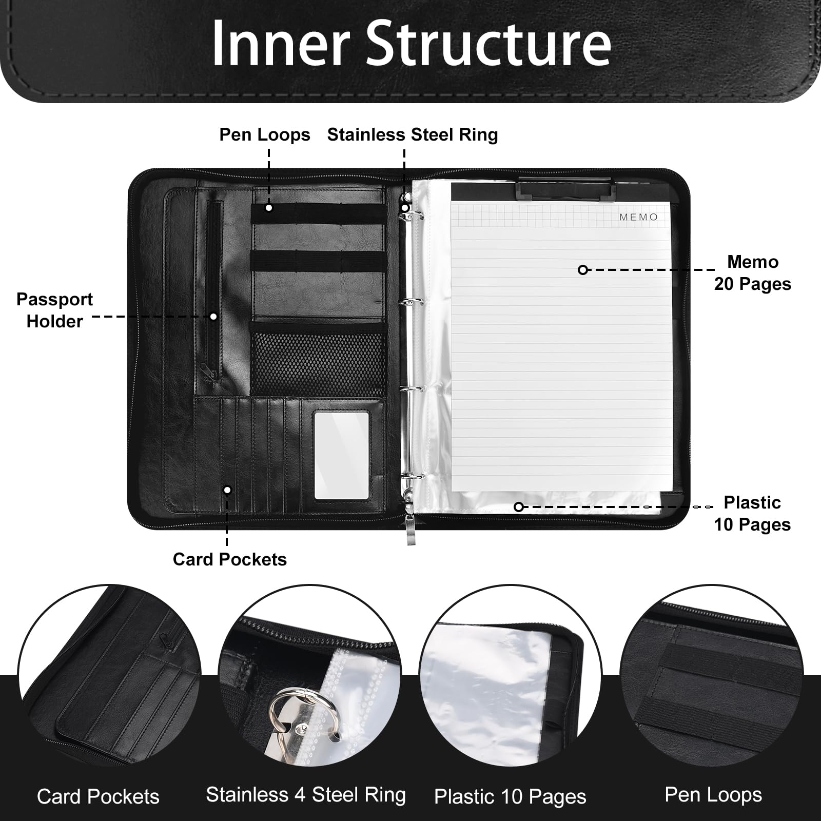 CADEAU PARFAIT - Un accessoire de bureau essentiel,vous pouvez bien organiser les éléments dont vous avez besoin,vous concentrer davantage sur vos objectifs et refléter votre professionnalisme et vos compétences. Range Document Wonderpool Porte-docuents En Cuir A4 Padfolio Anneaux Planchettes à Pince Classeur Raovible Porte Feuille Homme Porte-Documents De Conférence Portfolio Cuir Pour Bureau A6 Binder en PU Cuir, Porte Documents Multifonctionnel avec 12 Pochettes Transparentes Zippées... La conception à plusieurs emplacements pour cartes peut mieux répondre à vos besoins. La fente d'insertion du stylo garantit que l'intérieur du dossier est propre et bien rangé ZJCHAO Portfolio de conférence en cuir PU avec fermeture éclair A4 - Bagagerie... PLUS D'ESPACE POUR VOUS - À l'intérieur du dossier,vous trouverez de nombreux compartiments et supports pour les fournitures de bureau. ENSEMBLE DE DOSSIERS - L'ensemble comprend un dossier zippé en cuir de 27*36*4cm et gérer,un presse-papiers,1 petite calculatrice,10 pages de papier A4 perforé,20 pages de papier A4 non perforé et 1 titulaire de la carte. POLYVALENT - Les dossiers multifonctionnels professionnels vous facilitent non seulement le stockage des fournitures de bureau,mais vous apportent également de nombreux avantages. A6 Binder en PU Cuir, Porte Documents Multifonctionnel avec 12 Pochettes Transparentes Zippées MATÉRIAUX DE HAUTE QUALITÉ - Le dossier en cuir est fait de Matériaux de haute qualité,ce qui peut empêcher efficacement les rayures et la déformation. Par exemple : donner une apparence plus professionnelle aux vendeurs,résoudre les problèmes de manière plus planifiée,améliorer l'image de l'entreprise,etc.