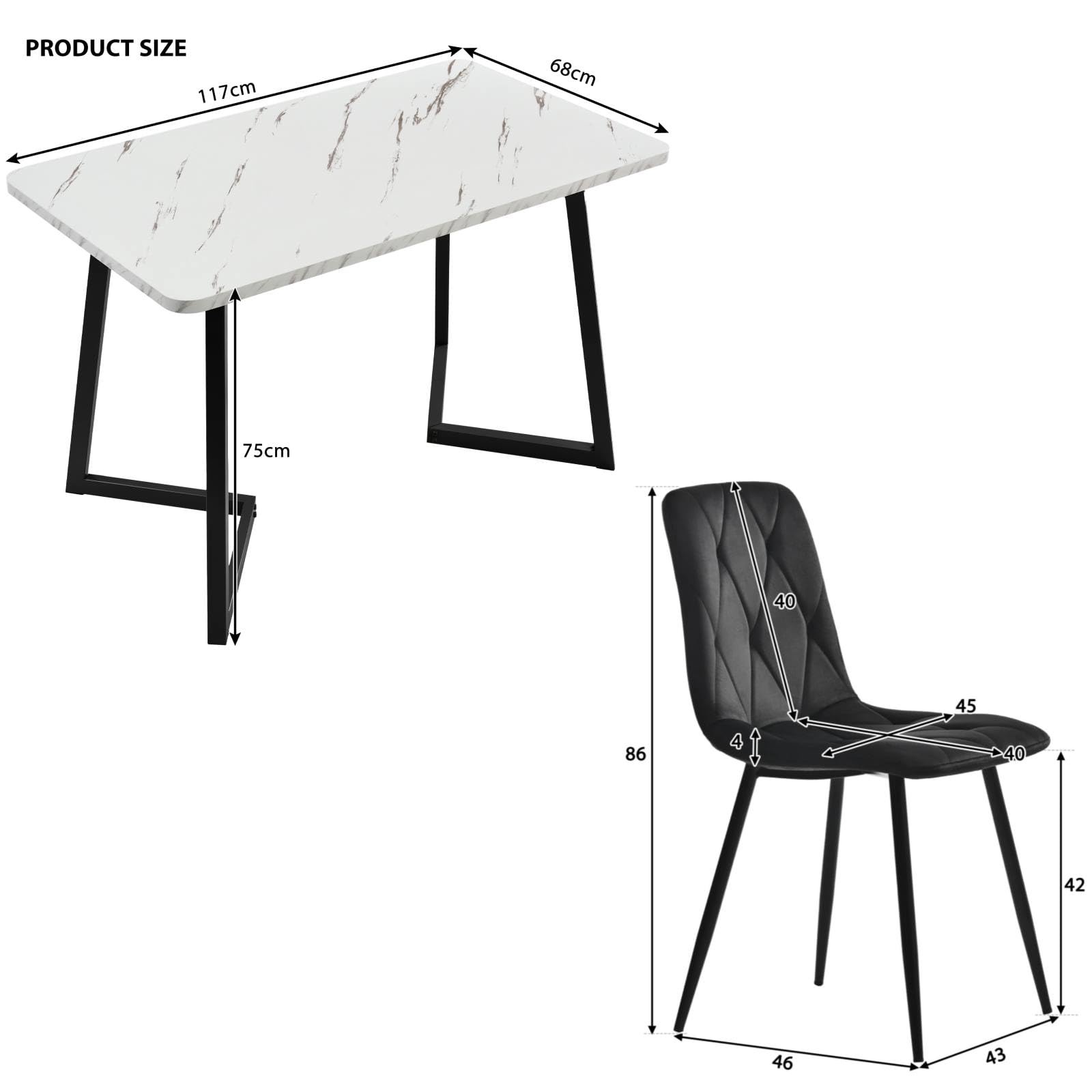 Sweiko Ensemble Table et Chaises(5 Pièces),Table de Salle à Manger aux Pieds Dorésavec 4 Chaises de Noir Twill Velours,Moderne Cuisine Rectangulaire Ensemble Table et Chaises Set (Noir+Or Le tissu s'estompe avec le temps. Lot 4 Chaises Velours Côtelé Lot De 4 Chaises De Salle à Manger Scandinave Fauteuil Assise Rembourrée En Velours Côtelé Pieds En Métal Pour Cuisine Salon Chambre Bureau, Gris Mobilier Salon Bureau Contemporain propos de la couleur La couleur du produit réel peut varier légèrement par rapport à l'image en raison de l'éclairage ou de l'affichage du moniteur. Spécifications de l'article · Siège: Velours · Châssis : Bois · Hauteur du siège: Hauteur d'assise: 47 cm Chaise moderne tissu noir pieds métal (lot de 2) TIM | Chaises | Pier... MATÉRIEL VÉLOURS CÔTELÉ :Revêtues d’un tissu velours côtelé doux au toucher, offrant une texture élégante tout en résistant aux tâches et à l’usure quotidienne. propos de la taille Une mesure manuelle a été effectuée, il peut donc y avoir des erreurs justifiées. FONCTIONNALITÉ MULTIPLE :un ensemble de chaises multiples idéales pour des repas en famille, des réunions professionnelles ou des espaces de détente, combinant style et praticité. propos des éléments de fixation Ne serrez pas trop les éléments de fixation, car cela pourrait entraîner des déformations ou des cassures. CONSTRUCTION ADAPTABLE :Chaises dotées de pieds angulaires réglables, permettant de s’adapter à des sols irréguliers et d’assurer une stabilité optimale dans n’importe quel espace. Matériau Tissu : Cordon Pieds de la chaise : Fer Capacité de poids 150KG/PCS Taille de l'assise 45., 72× 45., 72cm (l/p) Les coussins de pieds sont-ils réglables Oui Numéro de colis 2 Montage nécessaire 20min Outils supplémentaires nécessaires Tous les outils sont fournis Entretien et conseils A propos de l'entretien Tamponner immédiatement les déversements avec un chiffon propre et grand teint.