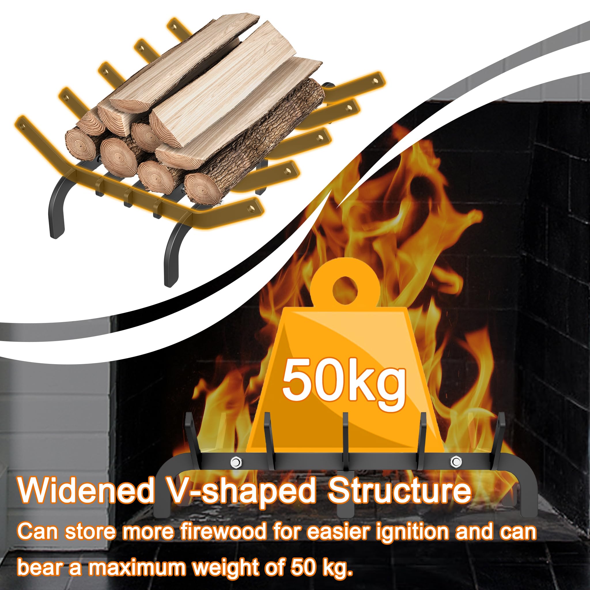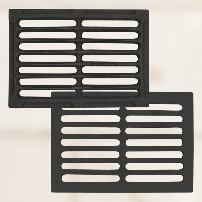 Avantages en un clin d'œil : La grille de cheminée a une forme en V élargie qui fixe solidement le bois et le rapproche des flammes, ce qui facilite l'allumage. Grille de Cheminée | 60 x 34 cm h0049 Cela assure une combustion uniforme et complète du bois sans résidus non brûlés sur le dessous. Grille De Cheminée En Fonte LILIIN Grille à Bois De Cheminée Avec Pieds, Support à Feu Robuste Pour Support Bois De Chauffage Forme V Vous pouvez l'utiliser de manière polyvalente dans les cours, les terrasses, le camping, les ponts, les cheminées, les cheminées ou partout où vous avez besoin d'une cheminée à bois pratique. Grâce à une distance de 7 cm entre le cadre de la grille et le fond, le bois est ventilé de manière optimale, ce qui facilite la combustion avec des produits de soufflage. HENGMEI Support de bois de chauffage Étagère à Bois de cheminée pour du... Le revêtement en poudre facile d'entretien permet un nettoyage facile en lavant et en séchant avant le stockage. Le revêtement en poudre spécial résiste à des températures comprises entre 600 et 800 °C, ce qui augmente considérablement la résistance à la corrosion et la durée de vie du produit. Disponible en fonte ou en acier, avec ou sans bac à cendres, elle s’adapte à tous les types de foyers, qu’ils soient ouverts ou fermés. Au-delà de la sécurité, certaines grilles jouent aussi un rôle clé dans la ventilation et la diffusion de l’air chaud autour de l’insert Finition de qualité supérieure : le cadre en métal robuste de la grille de cheminée supporte facilement des charges allant jusqu'à 50 kg. Épaisseur du matériau : 6 mm Matériau : acier à haute teneur en carbone de haute qualité Contenu de l'emballage : 1 grille pour bois de cheminée. Combustion optimale : les pieds de plus de 7 cm de haut de la grille en acier massif permettent une excellente circulation de l'air. Description du produit : La grille à bois de cheminée en fonte est idéale pour la plupart des cheminées standard. Les bords spécialement formés empêchent efficacement les morceaux de bois de glisser.
