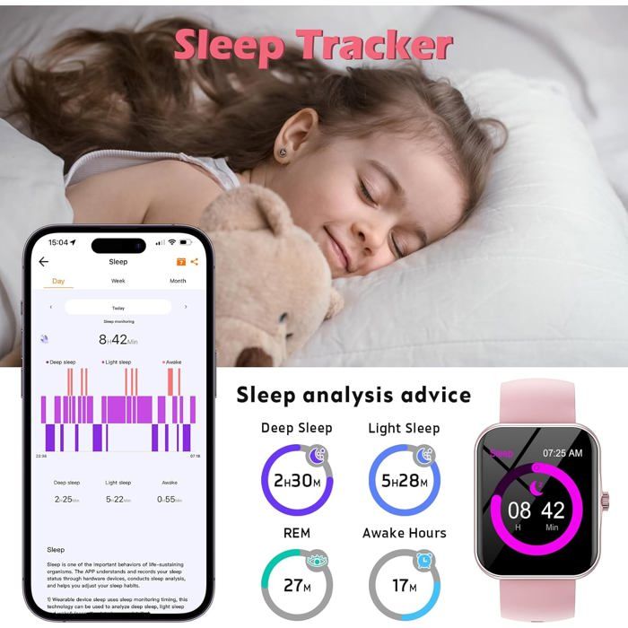 Avec son design élégant et ses fonctions personnalisables, c'est le cadeau idéal pour les anniversaires, Noël ou toute occasion spéciale. Smartwatch étanche IP68 Podomètre Montre Connectée Enfant Non APP Connectée, 1,83 Smartwatch Montre Podomètre Enfant Toutes les fonctions de base fonctionnent sans l'application ; l'application ne fait que déverrouiller les fonctions supplémentaires qui en dépendent. Montre Connectée Enfant avec Suivi de Précision Équipée d'une puce nouvelle génération, la montre TICTIKY Stellar 3 suit chaque mouvement des enfants : pas, sauts et sprints. Avec 100 modes sportifs, elle détecte automatiquement le vélo, le basket et la natation (étanche IP68). Félicitez votre enfant qui dépasse ses objectifs quotidiens et gagne en confiance [Cadran Personnalisable et Écran Tactile HD de 1,83]: Personnalisez l'écran tactile HD de 1,83 avec plus de 100 cadrans cloud ou téléchargez des photos de votre enfant pour créer des cadrans uniques. Cette fonctionnalité stimule la créativité et rend la montre vraiment unique. Montre Connectée Femme avec Appel Bluetooth, 1,7'' Smartwatch Sport... Compatible avec les smartphones Android 6., 0+ et iOS 9., 0+, elle offre une flexibilité pour les parents et les enfants. [Suivi d'Activité Toute la Journée]: La montre connectée TICTIKY Stellar 2 pour enfants et adolescents suit automatiquement les pas, la distance, les calories brûlées et les minutes d'activité. [Jeux de Réflexion et Contrôles Parentaux]: Équipée de 5 jeux de réflexion intégrés pour améliorer les capacités de réaction et de calcul, cette montre comprend également des contrôles parentaux. Montre Enfant Non Connectée Ou Connectée Librement,1,8Smartwatch Remarque : Le suivi du sommeil nécessite plus de 3 heures de sommeil et un port prolongé pour des résultats précis. [Encourage les Habitudes Saines et est le Cadeau Parfait pour les Enfants]: La montre connectée TICTIKY motive les enfants à rester actifs et à développer des habitudes d'exercice saines grâce au comptage de pas, aux modes sportifs et aux défis amusants.