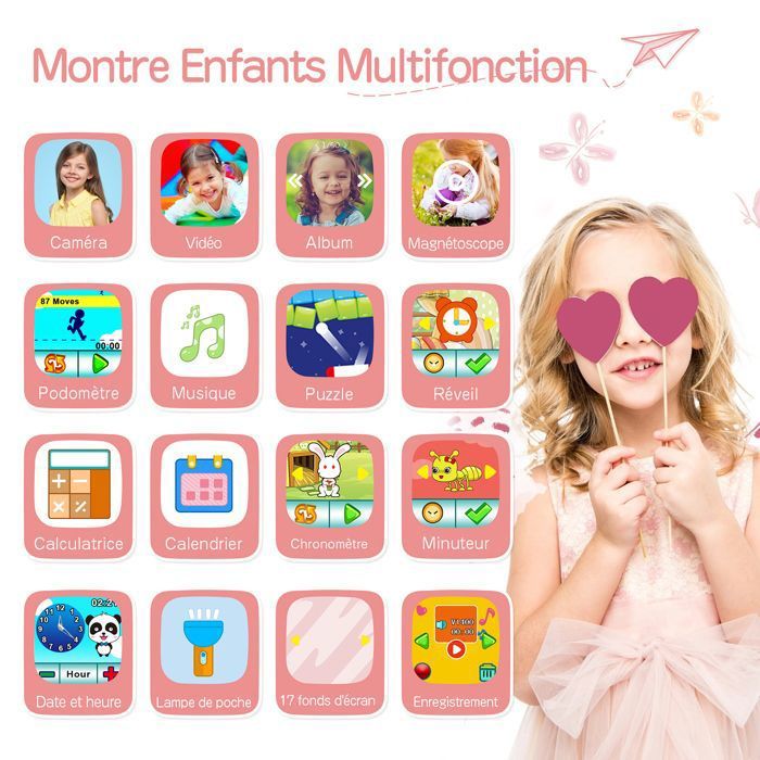 【Sport et santé】Pour encourager les enfants à adopter un mode de vie actif, la montre intelligente pour enfants propose 3 modes sportifs (course, haltérophilie, danse) et enregistre les données sportives. YEDASAH Montre Intelligente Enfants, Montre Connectée Enfant Téléphone Sa longue autonomie de batterie convient aux voyages ou aux activités prolongées, satisfaisant les besoins d'utilisation toute la journée des enfants. Montre Enfant Montre Connectée Enfants-26 Jeux Podomètre Musique Smartwatch Filles Garçons, Caméra, Lampe De Montre Connectée Enfant Gps 【Apprentissage interactif et suivi des habitudes】La montre comprend 10 livres audio en anglais et 101 cartes d'apprentissage anglais, couvrant 14 catégories (métier, paysage, temps, etc., ). Le podomètre compte les pas, la distance parcourue et les calories brûlées, aidant les enfants à développer l'habitude de faire du sport. YEDASAH Montre Connectée Enfant - Montre Intelligente Enfants Garçons Smartwatch Phone Appel SOS... Pour toute question, veuillez nous contacter, nous répondrons dans les 24 heures Associé à un lecteur vidéo exclusif, elle aide les enfants à enregistrer facilement les détails de la vie, cultivant efficacement leur créativité et leur sens esthétique Montre Connectée Enfants Smartwatch Jeu Montre Téléphone avec SOS Appelez 7 Jeux Musique Enfant... L'appareil photo prend des photos et des vidéos, permettant aux enfants de capturer des moments joyeux. En outre, elle est équipée d'outils pratiques comme calendrier, torche, chronomètre, calculatrice, utiles pour les scénarios quotidiens (chercher des objets la nuit, chronométrer l'exercice), devenant un bon assistant dans la vie quotidienne des enfants 【Design durable + garantie 1 an】La montre connectée enfant adopte un design durable, adapté aux scénarios d'utilisation actifs des enfants au quotidien. Elle dispose également de la fonction de lecture musicale et d'enregistreur : les enfants peuvent écouter leurs chansons préférées ou enregistrer leur propre voix, plus la fonction de torche. En outre, nous offrons un excellent service client et une garantie après-vente de 1 an.