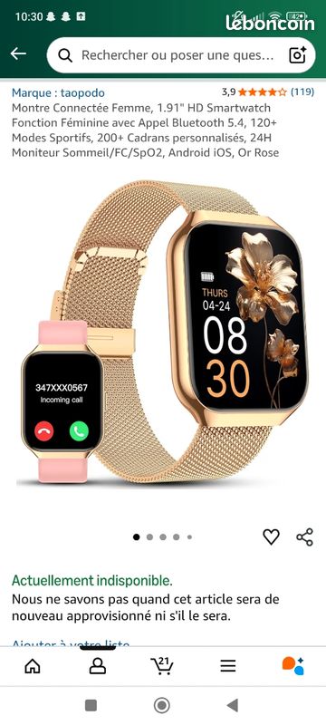 Smartwatch Femme Avec Appels Bluetooth 5.4 Montre Connectée Femme Taopodo 1.91 - Appel Bluetooth Santé 120 Sports IP68 Or IOS Android Tracker Santé Sport Femme 1 Montre Connectée Femme Xiaomi Montre Connectée Femme 2023 Avec Appels Numérotation Bluetooth 5.1, SWGOTA 1.32'' HD Smartwatch Montre Connectée Femme Taopodo Description La montre qui fait tout (ou presque) ! La TAOPODO c'est votre nouvelle meilleure copine : - Écran HD 1.91 ultra lumineux (même au soleil) - Prise d'appels mains libres (bye bye le smartphone) - 120 modes sport (même celui que vous ferez jamais) - Suivi santé complet (coeur, sommeil, cycle menstruel Montre Connectée Femme 1.09'' HD - Fonction Féminine Podometre Moniteur...