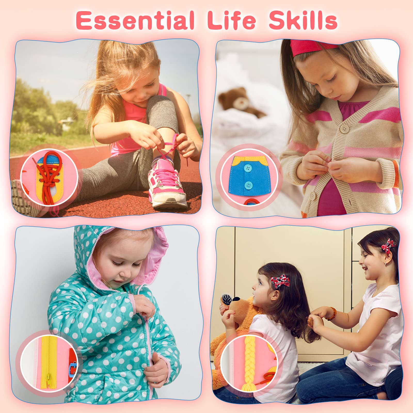 Tableau Apprentissage Routine Planche Occupée Montessori, Busy Board Bois Pyramide Tableau Activit Jouet Sensoriel 1 2 3 Ans hahaland Jouet pour Bébé 1 an Jouet Montessori avec Musique et Lumières pour Enf Busy Board Planche ontessori Bebe Quiet Book Apprendre La otricité... Apprenez les compétences essentielles de la vie Grâce à son design léger et beau, les enfants peuvent facilement le mettre dans le sac à dos et l'emporter partout où ils veulent, ce jouet sensoriel est également très adapté à l'apprentissage en classe de maternelle. 【Matériaux de sécurité et certifications 】ce jouet pour enfants est fabriqué en feutre qui a une texture douce et une finition soignée. 【Jouet de classe et de voyage】grâce à son design léger et beau, les enfants peuvent facilement le mettre dans le sac à dos et l'emporter partout. 4 couches Busy Board Ce jouet sensoriel est également très bien adapté pour l'apprentissage à la maternelle. Les activités de voiture, les activités d'avion et les jouets de voyage pour les tout-petits garderont vos enfants occupés et calmes pendant le long voyage. 【Enfance heureuse】c'est un cadeau parfait pour les enfants de 1 à 5 ans pour les anniversaires, Noël, Halloween, la fête des enfants et Thanksgiving. 4 couches Busy Board] Le tableau d'activités amélioré 2022 comprend 20 fonctions différentes pour aider les enfants à acquérir diverses compétences de vie par le jeu, telles que s'habiller, nouer des lacets et boutonner des boutons
