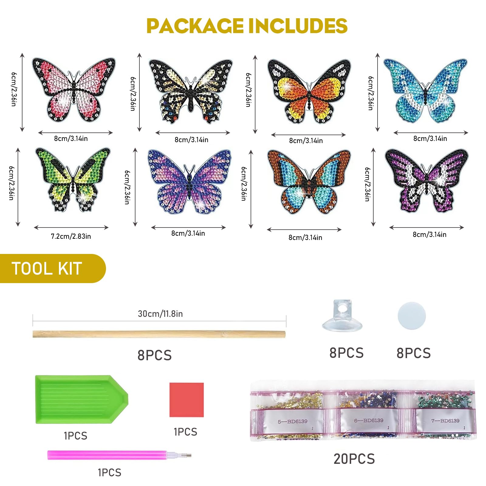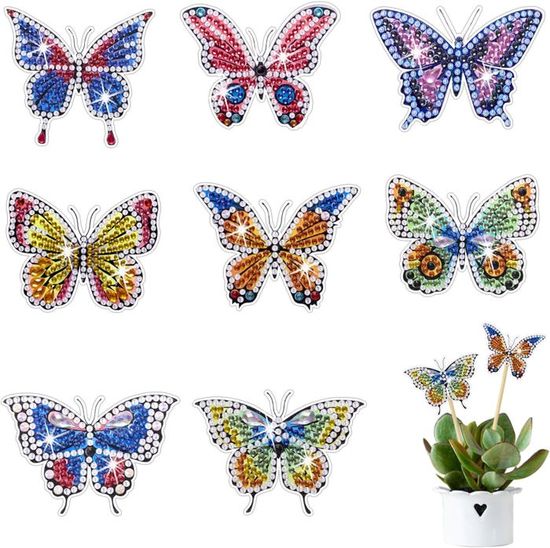 Diamond Painting Papillon, 8 Pièces Diamond Painting Papillons Kit DIY Accessoire Décoration Terrasse Bureau Diamond Painting Fée Papillon D'Or, Peinture Diamant Painting Strass Diamond Painting Petit Format Kits de peinture diamant 5D à faire soi-même : comprend 1 stylo diamant à points 1 disque diamant à points 1 pâte à diamant à points 1 paquet de diamants 8 ventouses 8 feuilles de ruban adhésif double face rond 8 brochettes de bambou 8 papillon 【Facile à Utiliser】Cet art de peinture diamant de décoration de jardin est facile à installer, retirez d'abord le film protecteur sur la surface décorative, suivez les instructions numériques ci-dessus, puis assemblez le. Accessoires D'Ornements De Peinture Diamant Papillon, Pour Jardin Peinture Diamant Papillon Pour Salon,Terrasse,Bureau, Pot De Fleu. De DmDoyy. 5,0 sur 5... 【Cadeau parfait】Idéal pour enfants et adultes, ce set permet de réaliser une papillon decoration unique, pour agrémenter fêtes, mariages, jardins ou balcons. 【Créatif et relaxant】Ce kit stimule la coordination œil-main et la créativité, et constitue une excellente option pour les passionnés de kit mosaique adulte désireux d’améliorer leur sens des couleurs.
