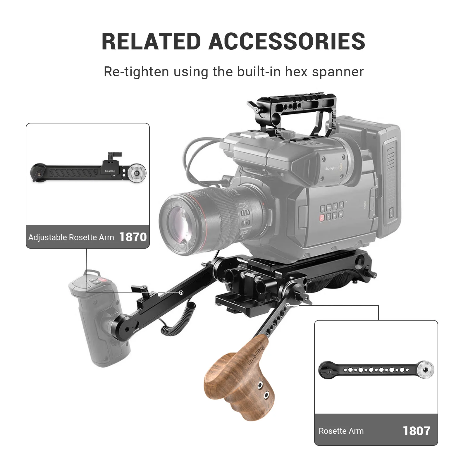 Smallrig Poignée en bois droite avec fixation Arri Rosette Poignée de chariot avec barre rotative droite, accessoires de Machine à... Poignée Bois SmallRig SmallRig Poignée Rotative En Bois Côté Droit Avec Pince OTAN Et Rail Smallrig Light Poignée droite rotative en bois : la poignée droite rotative en bois SmallRig pour ARRI rosette 5193 est conçue pour une prise de vue confortable à main levée. Fabriquée en bois massif de qualité supérieure, elle garantit une prise de vue stable et améliore votre expérience de tir. SmallRig poignée en bois droite avec rosette Arri 1941 (filetage M6) est une poignée artisanale en bois de rose, utilisée dans les systèmes de montage sur épaule ou pour les prises de vue à main. Vous pouvez ajuster la position de la rosette Arri selon vos besoins dans une certaine plage de mouvement vers le haut et vers le bas. La poignée est légère et exquise, très agréable à... Elle peut remplacer les poignées d'épaule traditionnelles ou se fixer aux cages à l'aide d'un support pour rosette ARRI (ID SAP2804). Desserrez la vis moletée pour ajuster l'angle avec précision, facilitant ainsi le cadrage et offrant une grande flexibilité de manipulation. Utilisation multi-scénarios : la poignée latérale peut être utilisée comme poignée montée sur l'épaule ou se fixe aux cages via le support de rosace pour l'interface ARRI pour répondre à vos différents besoins de prise de vue Remarque : Pour plus de sécurité, tenez toujours l'appareil photo à la main lors du réglage de l'angle.