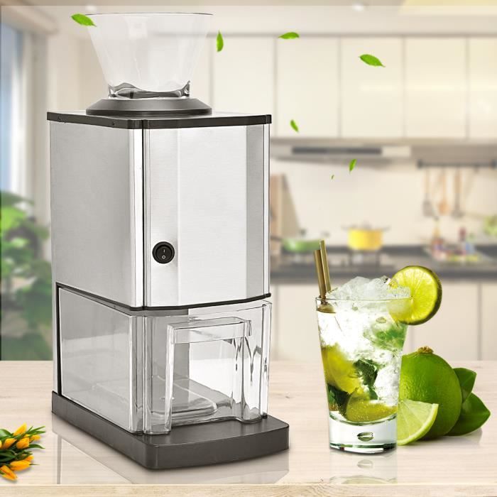 Un bol en acier inoxydable de qualité alimentaire est inclus pour récupérer la glace pilée Ce broyeur à glace électrique est idéal pour un usage domestique et professionnel. Il est également idéal pour la production artisanale de granités et de boissons glacées pour un usage professionnel La poignée du broyeur à glace est équipée d'un micro-interrupteur de protection qui s'arrête automatiquement lorsque la trémie est ouverte, garantissant ainsi un fonctionnement sûr. Rasoir à Glace, Broyeur à Glace électrique, Machine à Glace Pour Le Commerce Et La Maison Double Lames En Acier Inoxydable Pour Machine A Glace Rasee 98 Kgh Double Levres Et Prise De Glace Superieure Pour Assiettes Bols Et Tasses 300 W2000 Trmin 【Nettoyage facile et fonctionnel】 : Facile à nettoyer après chaque utilisation, il permet de gagner du temps et de l'énergie et de préparer des cônes de glace parfaits, parfaits pour vos réceptions. 【Conception sûre et pratique】 Sa base robuste en fonte offre un poste de travail stable et silencieux. Le puissant moteur entièrement en cuivre de 250 W, doté d'une lame tranchante en acier inoxydable de 420, permet à la machine de produire environ 120 kg de... Vitesse de rotation : 2 200 tr/min., Tension : 110 V/220 V., Puissance : 500 W., Fréquence : 50/60 Hz Ce broyeur à glace hautement efficace permet de broyer jusqu'à 84 kg de glace pilée par heure Il est le partenaire idéal pour vos fêtes, réunions à domicile ou autres occasions. Broyeur Glace électrique VEVOR BROYEUR À Glace Électrique Machine à Glace Pilée Commerciale 80 Kg/h 220 W EUR 47,99 Machine à Glace Pilée 500W Professionnelle Large gamme complète de machines à glaçons pleins et machines à glaçons creux offrant une production de glace jusqu'à 72 kg par jour. Des modèles de machines à glaçons avec ou sans réserve. Idéal pour tout type de boissons et cocktails 【Dimensions hors tout】 : 43 x 30 x 20 cm (L x l x H).