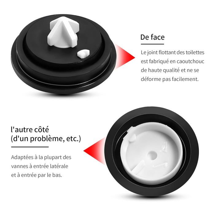 Caractéristiques : * Nom du produit : joint de réservoir de toilette. Changer une chasse d'eau : Guide étape par étape 【Rondelle en caoutchouc pour réservoir de toilette】 – Dotée d'un design conique en forme de cône, cette rondelle en caoutchouc assure une étanchéité entre le réservoir et la poêle, ce qui permet de fuir. Réparation WC Joint Conique Comment Reparer Chasse D'eau ? La Réponse Est Sur Rondelle Caoutchouc Réservoir WC *Facile à installer, convient pour la fixation et la réparation de vos toilettes. * Dimensions : 8 x 5 x 3 cm., Couleur : argenté. Pièce de rechange pour charnière robuste pour siège de toilette... Utilisation : ces boulons et écrous sont adaptés à presque toutes les toilettes et peuvent être utilisés comme un bon accessoire pour réparer et entretenir les installations de toilettes. Longueur du boulon : 80 mm. Convient pour la réparation et l'entretien de vos toilettes. Utilisation : ces boulons et écrous sont adaptés à presque toutes les toilettes et peuvent être utilisés comme un bon accessoire pour réparer et entretenir les installations de toilettes Trou de 55 mm pour filetage au bas de la valve. Matériau : caoutchouc, plastique. Boulons et écrous d'accouplement de charnière de toilette : fabriqués en matériau pratique, ces boulons et écrous d'accouplement de charnière de toilette sont fiables à utiliser. * Rondelle conique en forme de donut en forme de donut pour réservoir de toilettes en caoutchouc * Rondelle en caoutchouc souple pour faire l'étanchéité entre la casserole et le réservoir. Convient pour la réparation et l'entretien de vos toilettes.
