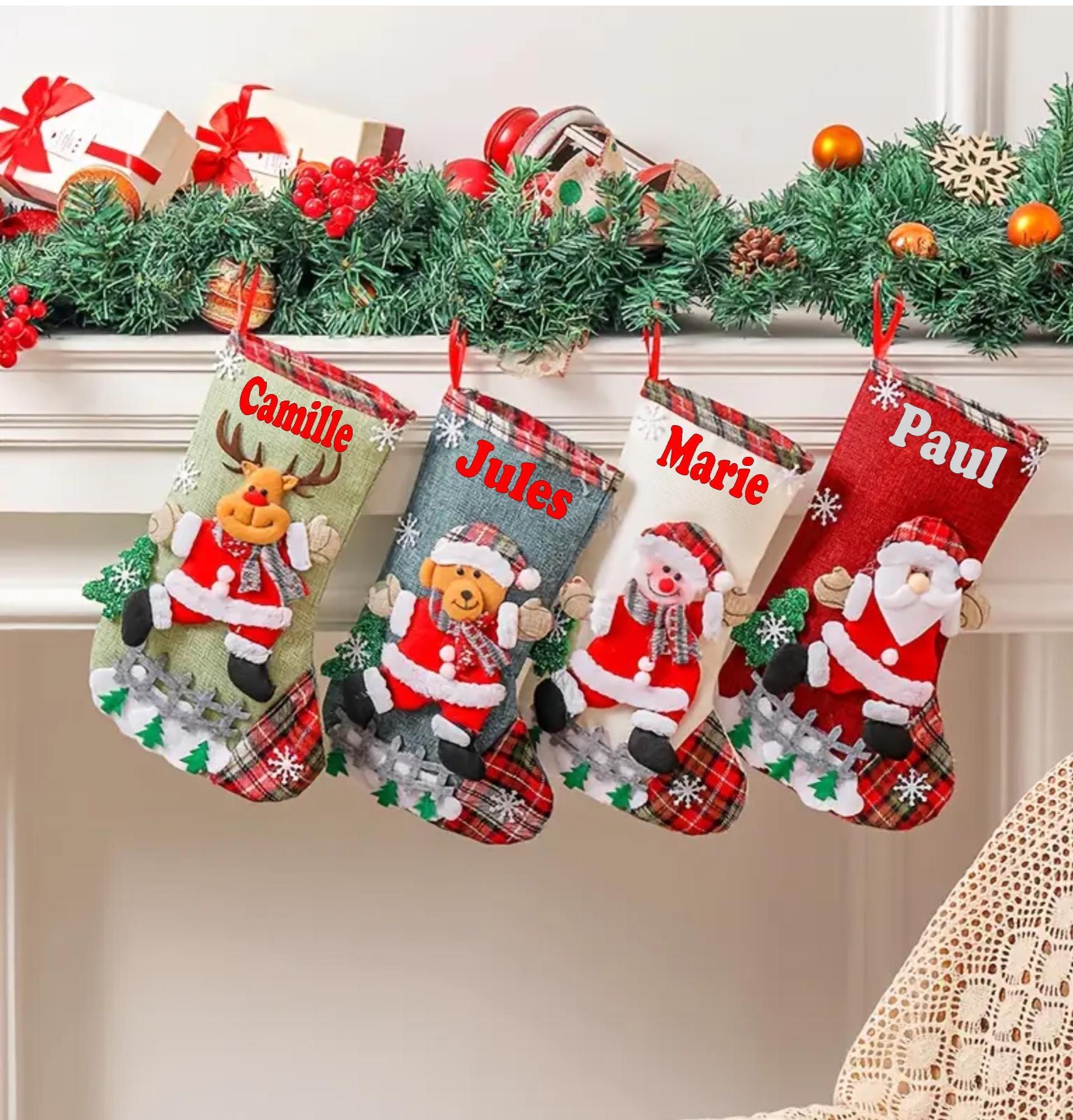 Chaussette de Noël rouge et beige personnalisée avec un prénom Éviter de placer près de sources de chaleur. Chausette Neige Décoration Cheminée Noël Chaussette Noël Personnalisée 2024 - Bas Cheminée Nom Brodé - Décoration Fête Neige Chaussette Cadeau Noël Chaussette Neige Son visuel bonhomme de neige et ses flocons blancs en font un élément déco chaleureux et intemporel, parfait pour créer des souvenirs chaque année. Motif de bonhomme de neige | Vecteur Premium Chaussette Noël Cheminée Merry Christmas Du Bonhomme De Neige | La... FORMAT PARFAIT 30 CM — Taille idéale à suspendre à la cheminée, près du sapin ou sur une étagère : suffisamment grande pour y glisser des chocolats, jouets ou petits cadeaux. Un indispensable pour créer de la magie en décembre. DESIGN FESTIF — Jolie botte en feutrine rouge avec flocons et bonhomme de neige, prête à embellir votre décoration de Noël. Chaque botte mesure 30 cm, une dimension idéale pour accueillir friandises, petits cadeaux ou messages surprises. 2 COULEURS AU CHOIX — Personnalisation au prénom en vert ou rouge selon vos goûts ou pour coordonner entre les membres de la famille. Description du produit Apportez une touche de magie et de tradition à votre intérieur avec cette chaussette de Noël personnalisée, prête à être suspendue près de la cheminée ou sous le sapin.