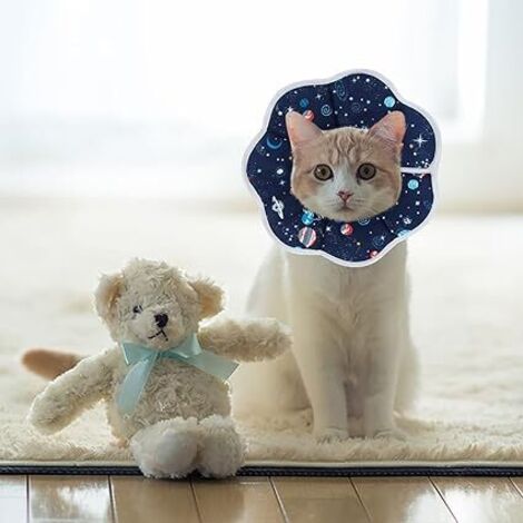 Cette collerette ajustable pour chat est conçue pour protéger votre animal après une chirurgie. Fabriquée en polyester, elle est de couleur bleue et convient... Taille:Taille M Adaptée pour Tour de Tête 17 - 27cm Chats Qualité:Finition Précise, Durable et Peu Prone à Détacher Protection Blessure Chat Collier,Collier Anti-morsure Pour Chien,en Cuir PU Pour Petits Chiens,Sport,bouledogue,carlin Collerette Chat Protection Fonction:Protection du Cou, Évite Blessures par Lèchement et Morsure 1 Pc Cercle Elizabeth Collerette Chat Anti Grattage Les Fleurs Anneau De Cou Collier De Cou... Matériau:Tissu Doux, Doux pour la Peau et Non Etouffant Collerette Chat Collier Anti Morsure Collier de Protection, Colliers