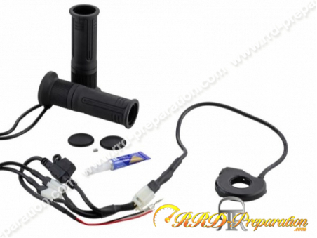 Fusible : mini 10 A (recommandé 5-10 A). 120 mm : montage direct, pas besoin d'entretoises. 130 mm : gauche : grande entretoise en silicone 3 mm × 2 + 2 mm × 2 ; droite : petite entretoise en silicone 3 mm × 2 + 2 mm × 2., Pour les motos sans extrémités de guidon, utilisez les embouts fournis. Tension d'entrée/de fonctionnement : 10-16 V. Lorsque vous changez la longueur du guidon, respectez les règles de la route et portez vous-même la responsabilité de la sécurité. Découvrez notre sélection de poignées chauffantes et de manchons conçus pour contrer le froid et l'engourdissement. Mettez fin à la sensation désagréable du froid et profitez de vos sorties à deux roues, quelle que soit la météo Robuste et confortable : fabriquées en thermoplastique TPV, diamètre extérieur de 33,5 à 34 mm pour une prise en main d'usine. Longueur du câble : Câble SAE 12 V : 45 cm (plus et moins, avec pince de fourche). Description du produit Entretoises selon la longueur du guidon : 115 mm : 3 entretoises en acier inoxydable de 1,5 mm à gauche et à droite. Chauffage Moto Hiver Télécommande Poignées Chauffantes Moto, Scooter, Manchons Quad étanche IP67 Moto Les poignées chauffantes Tecnoglobe moto Luxe s'adaptent sur des motos ou des scooter avec un guidon de 22 mm de diamètre avec plusieurs systèmes de fixation... télécommande (câble : 46 cm, 65 cm × 2, 69 cm) câble SAE 12 V (45 cm) Avertissement De Sûreté non 1 embout de poignée d'accélérateur. Matériau : TPV (élastomère thermoplastique) Contenu de l'emballage : Poignées chauffantes (gauche et droite, 120 mm)., 2 embouts de guidon., Accessoires d'installation. Ajustement universel (guidon de 22 mm) - Compatible avec les guidons standard de 22 à 22,4 mm - Longueur réglable de 115 à 130 mm avec entretoises fournies. 450MT Poignées chauffantes - CFMOTO Benelux Entretoises en acier inoxydable 1,5 mm × 6., Grandes entretoises en silicone de 3 mm x 4., Petites entretoises en silicone 2 mm × 4., clé hexagonale. Diamètre extérieur : 33,5-34 mm. Longueur : 120 mm (structure réglable intégrée, convient également aux guidons de moins de 120 mm) ; longueur du guidon recommandée : 115-130 mm (avec entretoises réglables). Caractéristiques du produit : Diamètre du guidon : 22 mm (22,4 mm standard).