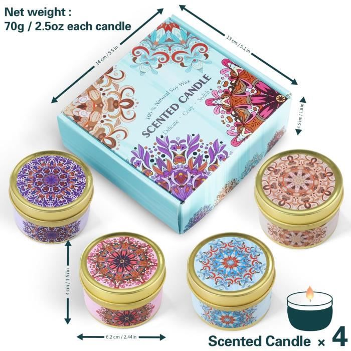 Les bougies parfumées chaudes et les parfums peuvent détendre votre corps, l'ensemble de bougies parfumées est parfait pour le yoga, le bain, les rendez-vous, le bureau. C'est un cadeau très sincère. ✅Spécifications Nom du produit : Bougie parfumée Matériel: cire de soja Quantité : 4 pièces Durée de combustion : environ 80 heures Contenu : 1 x 4 bougies parfumées ⭕Veuillez noter : * Gardez les bougies hors de portée des enfants et des animaux domestiques. Les bougies parfumées peuvent éliminer l’irritabilité, la tension, la dépression et le stress. Ne laissez jamais une bougie allumée sans surveillance. Lot de 4 bougies parfumées de 70,9 g, chaque petite bougie dure 15 à 20 heures, l'ensemble dure plus de 80 heures au total. Motifs mignons et colorés avec des bougies de Noël, ce qui le rend parfait pour les cadeaux de Noël et les cadeaux de vacances 🌺Multifonctionnel : les bougie noel sont conçues avec des motifs de Noël exquis et peuvent être réutilisées comme décorations pour votre maison. 🌺Matériau de Haute Qualité : les bougies de Noël sont faites de cire de soja et de mèches en coton biologique, qui sont belles, portables et ont un parfum riche. lot de bougies parfumées coffret bougies parfumées cadeau bougie parfumées noel bougie parfumées cadeau Offrez nos bougies à votre petite amie/soeur/mère et à vos proches. Bougie Rose Santal Romarin RANJIMA Bougies Parfumées Coffret Pour Noël, 4PCS Cire De Soja Naturelle, Bougies D Lot 4 Bougies Cire De Soja Bougies Parfumées En Cire De Soja - Décoration De Noël - Cadeau De... Les bougies parfumées satisfont votre amour du bien-être avec un parfum agréable et durable qui vous permet de profiter de moments de détente dans n'importe quelle pièce. 🌺Durée de Combustion des Bougies : chaque bougie de Noël dure de 15 à 20 heures, avec une durée d'utilisation totale allant jusqu'à 80 heures. 🌺4 Parfums : la bougie parfumée de Noël contient 4 parfums, dont la rose et le bois de santal, le romarin, la citronnelle et le gardénia. Les bougies de Noël conviennent à la maison, à la chambre, au salon et au bureau pour créer un parfum frais et parfumé. 12PCS Bougies de Noël Bougies Parfumées 2.5oz Bougies d'aromathérapie Les bougies de Noël ont un parfum durable et offrent une aromathérapie pour un soulagement durable du stress. Placez les bougies sur des surfaces stables. Ne placez pas la bougie dans un endroit aéré, sinon la durée de vie de la bougie sera raccourcie. Avertissement De Sûreté Gardez les bougies hors de portée des enfants et des animaux domestiques.