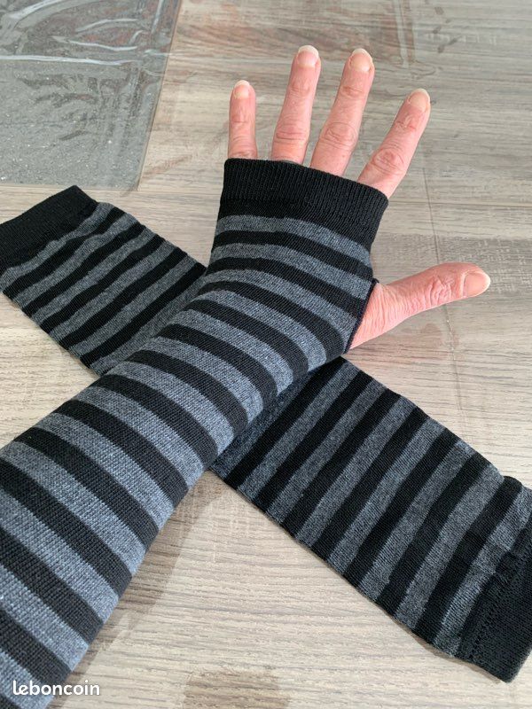 Mitaines rayées noires & blanches 100% mérinos avec doigts - Un Contenu : 1 paire de mitaines longues., Conseils : 1., Les mesures étant prises à la main, les tailles indiquées peuvent varier de 1 à 2 cm., 2., Veuillez permettre une légère différence de couleur en raison des différentes résolutions d'écran. Manchons Chauds Acrylique Luckwaii Manchettes Rayées Longues Mitaines Thermiques Extensibles Mitaines Extensibles Chaudes Couleur : noir Schwarz und Hellgrau Gestreift. Tricotées en coton et polyester, elles sont super chaudes et confortables. Le trou pour le pouce te permet de garder tes doigts libres pour utiliser ton... Nos gants d'hiver en tricot à rayures sont conçus avec des rayures noires et gris clair, la couleur est très féminine, ils sont en même temps faciles à porter... Cadeau mignon : nos manchons conviennent non seulement à un usage quotidien, mais aussi à diverses activités de plein air, les couleurs classiques sont faciles à assortir à vos différents vêtements. Avec un trou pour le pouce et un trou pour les doigts. Parfait pour votre femme, fille ou collègue comme cadeau d'anniversaire, de Saint-Valentin ou de Nouvel An. Matériau : alliage Fibres acryliques tricotées. Conception de trou pour le pouce : ces longs gants sans doigts sont équipés d'un trou dans le pouce, vous pouvez utiliser votre téléphone portable et votre ordinateur de manière flexible, de sorte que vous pouvez faire ce que vous voulez faire tout en restant au chaud. Caractéristiques techniques : Nom du produit: Manchons d'hiver pour femme.