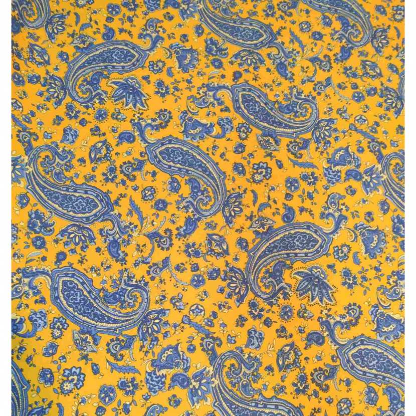 Tissu Floral Bleu Jaune Décoration Tissu Voile De Coton Fleurs Brodées Sur Fond Bleu Denim - Par 10 Cm Tissu Jaune En Coton 3.40 m de coton imprimé provençal jaune paille (ref : CX-2759 Présentation du produit Tissu provençal jaune 'Bonnieux' en coton - 140 cm de large - vendu au mètre Tissu provençal en coton imprimé, modèle Bonnieux jaune, large de 140 cm. Ce tissu typique du Sud de la France présente un motif floral bleu sur fond jaune éclatant, idéal pour la confection de nappes, rideaux, coussins, vêtements... Le tissu est conçu pour un usage quotidien, offrant une excellente résistance et un entretien facile en machine. Sa composition en coton assure un toucher agréable et une belle tenue dans le temps. Que ce soit pour habiller vos fenêtres, créer du linge de table ou confectionner des accessoires décoratifs, ce tissu provençal traditionnel apportera le charme authentique du Sud à votre intérieur. Ce tissu en coton de haute qualité présente un motif floral bleu élégant sur un fond jaune lumineux qui apportera une touche de soleil méditerranéen à votre intérieur. DIMENSIONS: Tissu de 140 cm de largeur, vendu au mètre pour s'adapter à vos projets de couture et de décoration MATÉRIAU: Coton de qualité supérieure offrant confort et durabilité pour un usage quotidien POLYVALENCE: Parfait pour la création de nappes, rideaux, coussins, vêtements et accessoires de décoration Apportez un vent du sud dans votre décoration avec cette belle cretonne 100% coton imprimée d'un motif provençal baroque bleu et jaune sur fond écru. Ce tissu...