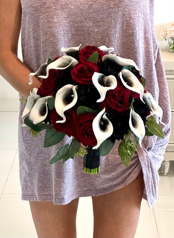 VINGVO Bouquet artificiel Bouquet de mariée bouquet de fleurs Bouquet De Mariée De Demoiselle D'honneur, Mag... – Grandado Décoration Halloween Bouquet Réalisé avec des fleurs en soie/satin de haute qualité, il offre un réalisme impressionnant avec ses pétales bien pleins et superposés. Les couleurs noire et... Spécifications : Couleur : illustré Dimensions : 27,5 x 17 cm Contenu : 1 bouquet de mariée Bouquets de mariée gothiques noirs bordeaux, pour demoiselles d'honneur, Roses artificielles en mousse de soie, Bouquet de mariage à fleurs pour... 【Décorations de Noël】Décorez votre maison avec ces choix d'Halloween faites entrer votre famille vous dans les vacances 【Polyvalent】Vous pouvez les utiliser pour les fêtes d'Halloween, Pâques, décoration intérieure, le centre de réception, les compositions florales plus encore, ils peuvent simplement être placés dans un pot ou un vase.