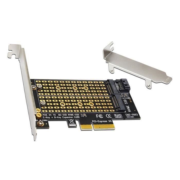 Adaptateur NVMe Vers PCIe 3.0 Carte D'extension PCIE Vers USB3.0 Raccord D'ordinateur Adaptant Le Carte NVMe Vers PCIe 3.0 X4 Cet adaptateur SSD M.2 à 3 ports est l’une des seules cartes qui prend en charge les disques SSD M.2 PCIe et SATA. C’est une façon polyvalente d’augmenter la capacité de stockage globale de votre ordinateur de bureau ou serveur Carte PCIE X4 PH44 Carte Adaptateur PCIe 4 Ports M.2 NVME - Extension SSD Pour Carte Mère Carte Adaptateur Nvme [Fonction] Étend la capacité de stockage et augmente les vitesses de transfert de données, ce qui le rend idéal pour les jeux, l'édition multimédia et les mises à niveau du système. Adaptateur de carte d'extension SSU EM2-5001 PCI-E 3.0 X4 vers NVMe M.2 NGFF M Key SSD Riser Caractéristiques : - Carte adaptateur NVME M.2 vers PCI-E 3.0... [Installation facile] Conception plug-and-play, simple à installer dans un emplacement PCIe, aucune configuration compliquée requise. 2 NVMe 2230, 2242, 2260 et 2280, garantissant une large compatibilité pour différents formats de lecteur. 2 NVMe en interface PCIe 3., 0 X4 pour des performances plus rapides. Item Specifications Matériau:Métal et plastique Couleur:Noir et argent Compatible avec:NVMe 2230/2242/2260/2280 Package 1 x carte d’extension 1 x support 1 x kit de vis