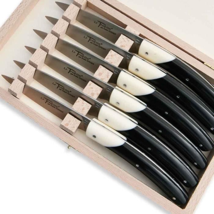 Coffret 6 couteaux inox Thiers Roger Orfèvre - 2 finitions Ces fourchettes ont été usiné en acier tout inox d'une taille de 20 cm avec décors Maison sur des manches réalisés par micro-billage sélectif : bulle, vache, traits, rallye, barrière, entrelacé. Coffret 6 Fourchettes Acier Inox Couteau Pradel Excellence Roger Orfèvre 10107.f Coffret 6 Fourchettes, 20 Cm, Tout Inox, Décors Le Couteau Sans Lame Fourchettes Le Thiers Roger Orfèvre Coffret de 6 couteaux de table forgés Le Thiers par ROGER ORFEVRE, microdentés, 23 cm, tout inox. Décors « maison » sur manches réalisés par microbillage... Coffret 6 Fourchettes de table Le THIERS® Campagne, manche en boi...