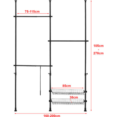 Barre de penderie extensible blanche 120 cm MOTTEZ | 377600 | Rangement... Extensible jusqu'à 180 cm. 4 perforations à chaque extrémité., Dimensions : Hauteur : 7,5 cm,, Longueur : 96,5 à 180 cm , Largeur : 6 cm , Poids : 915 grammes Tringle Rangement Vêtements Sans Perçage Optionnel Grille De Défense Téléscopique De 99 à 188 Cm 3 Barreaux MOTTEZ Kit Penderie Mottez En métal laqué blanc. Penderie telescopique Penderie telescopique : la sélection produits Leroy Merlin de ce samedi au meilleur prix ! Retrouvez ci-après nos 382 offres, marques, références et promotions en stock prêtes à être livrées rapidement dans nos magasins les plus proches de chez vous Tringle de penderie. QWORK® penderie telescopique, cintre télescopique réglable, pour