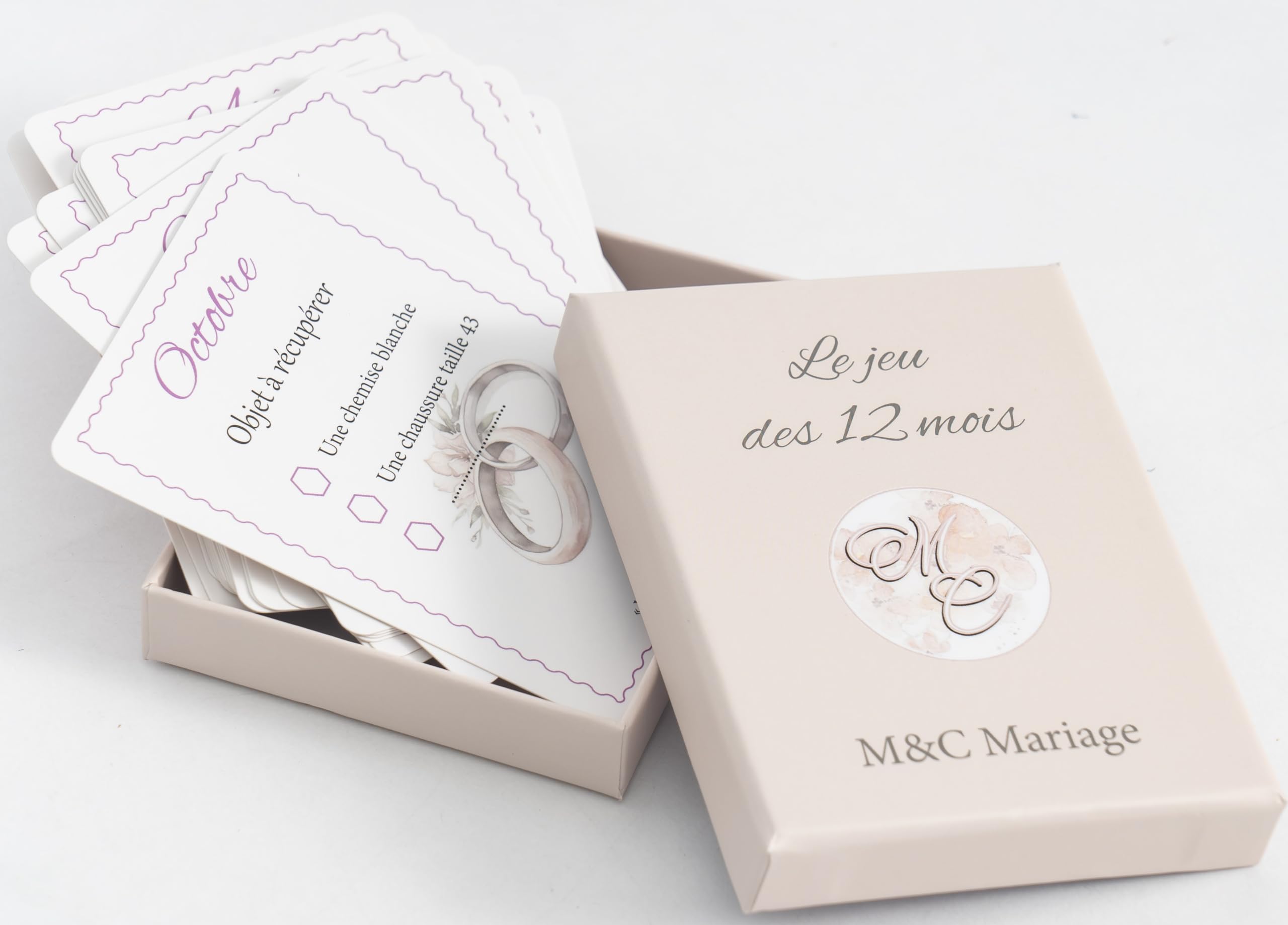 ♻️ ECO RESPONSABLE, Sans emballage plastique, box en carton. Jeu Invités Mariage Jeu Photo De Mariage, 50 Défis Photo Pour Votre Mariage, Jeu De Mariage Amusant Pour Invités Cadeau Invité Mariage 🎊 ANIMATION INOUBLIABLE, embarquez pour une aventure unique, vos convives devront coopérer par équipe pour retrouver l'alliance de la mariée et ainsi briser la malédiction! Préparez une tartinade de radis et surprenez vos invités Animation brise glace par excellence. ⏳JEU PRET A L'EMPLOI, gain de temps sur votre organisation, rien à imprimer, installation rapide le jour J Surprenez vos invités : sélection originale d'idées cadeaux pour un... Rapprochez vos invités grâce à notre Escape Game Mariage. 📷 DES SOUVENIRS A VIE, avec notre Escape Game Mariage, vos convives se souviendront longtemps de votre Mariage 📜 MAITRE DU JEU Deux choix: 🎲 Les mariés maitre du jeu, profitez en pour passer de table en table pour aiguiller et partager des moments de joies et de rire avec vos proches 🎲 Un proche maitre du jeu, les mariés peuvent s'amuser et profiter de l'Escape Game comme tous les invités Surprenez vos invités : sélection originale d'idées cadeaux pour un 🍾 FUN, Des énigmes, un code à déchiffrer, un cri improbable et des heures de fous rires ! 🥇 QUALITE PREMIUM, 🎲une enveloppe stylisée par équipe (environ 8 personnes), discrète et élégante qui se mariera aisément avec votre décoration 🎲une douzaine de pages de Jeux par équipe 🎲de nombreux accessoires en matériaux nobles par équipe (mappemonde, pièce en bois, miroir, etc) 🎲une boite à clef avec un code final à 4 chiffres à décoder 🎲 une page maitre du jeu contenant les solutions de l'énigme 🎲 imprimé en haute résolution sur du papier création épais 256g/m²