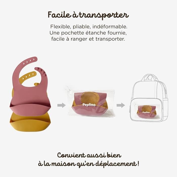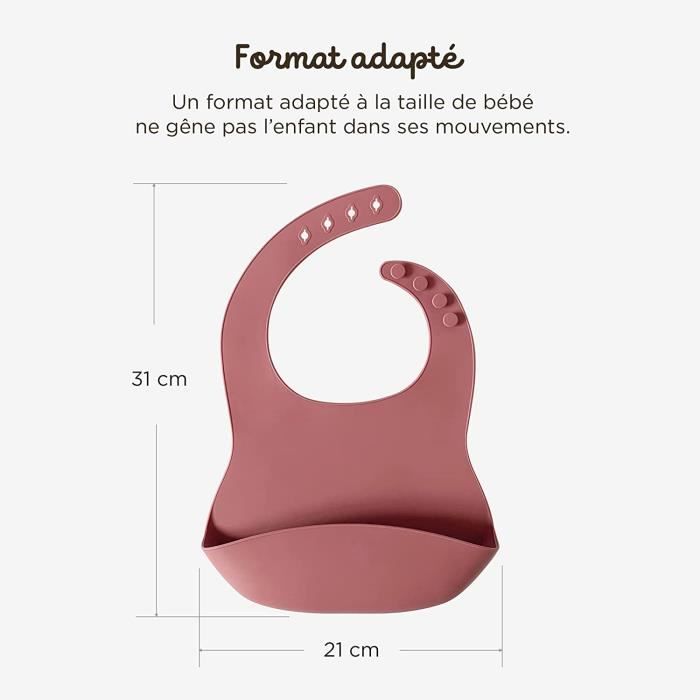 Un cadeau adorable à offrir pour les fêtes célébrant nos bébés (Naissance, baby shower, 1 an ou anniversaires., ., ., ) et seront certainement un succès auprès des nouvelles mamans et des nouveaux papas. PD07593-BAVOIR.Bavoir en Silicone pour bébé. bavoir imperméable. banane Cette bavette bébé est flexible, ne se déforme pas, peut être pliée ou roulée sur soi-même. Sans BPA, sans impression graphique toxique. 💦【FACILE À NETTOYER】 Bavoir imperméable bébé en silicone avec réservoir, idéal pour protéger les vêtements des tout-petits et passer moins de temps à nettoyer après le repas. Disponible en différents couleurs originales pour bébé fille et bébé garçon. Essuyez rapidement, rincez facilement sous l’eau du robinet ou à placer simplement au lave-vaisselle après utilisation. 5 Bavoirs en Silicone Souple avec Récupérateur, 5 Motifs - Solide... Peplino est une marque française née de l'amour inconditionnel de parents pour leur enfant. Format adaptéSpécialement élaboré pour adapté à la taille de bébé. 🥕【POCHE DE RÉCUPÉRATION, BOUTONS RÉGLABLE】Nous avons conçu le récupérateur de nourriture en contournant la poitrine de bébé pour que le bavoir reste droit même avec les agitations d'un tout-petit. Moins de linge à laver, une économie d'eau et de lessive. L'ouverture et le maintien naturel protègent efficacement contre les éclaboussures et évitent aux restes de tomber au sol, sur la table ou les vêtements durant le repas. Bavoir Cadeau Nouveau-né Bavoirs Bébé En Silicone, Bavoir Silicone Souple,léger,imperméable, Lavable Avec Poche Récupérateur Pour Attraper Les Aliments,lot - Puériculture & Eveil Bébé Accessoire Repas Bébé Sans BPA Un matériau totalement sain en fait une excellente idée de cadeau pour les nouvelles mamans ! 🍃【LÉGER, CONFORTABLE, PORTABLE】Le bavoir bébé léger et doux de sorte que votre tout-petit ne ressentira porter presque rien ! Fournie avec une pochette étanche, facile à ranger et transporter. L'encolure réglable de 4 longueurs différentes permet un ajustement parfait pour un confort optimal et une utilisation tout au long de la croissance dès 4 mois jusqu'à 4 ans. Finis les bavoirs en tissu et les vêtements tâchés. La joie, la vitalité et le dynamisme de nos bébés constituent la source de notre inspiration pour leur apporter le meilleur au quotidien. Simplifiez le nettoyageEntièrement lavable, il se nettoie d’un coup d’éponge ou d'un simple rinçage à l'eau savonneuse et peut même passer au lave-vaisselle !, Simple et pratique ! La pochette étanche évite de salir le sac à langer avec les restes de nourriture après utilisation du bavoir en silicone. ❤️【FORMAT ADAPTÉ】La forme a été spécialement conçue pour adapter à la taille de bébé, ne gêne pas l’enfant dans ses mouvements. Rangement facileConvient aussi bien à la maison que durant les déplacements ! Grâce à la grande résistance du silicone, nos bavoirs bébé sont durables dans le temps. 2 Pièces Bavoir Silicone Adulte Bavoirs Adultes Pour Manger Dossards... Disponible en plusieurs couleurs tendances.