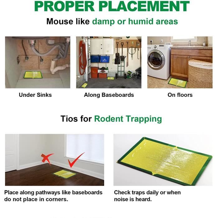 Que des souris, des rats ou d'autres nuisibles soient placés avec un appât, les pièges fonctionnent spécifiquement là où ils sont nécessaires. Piège à Souris Réutilisable - 6 Pièces - Plastique - Intérieur et Ils adhèrent aux carreaux, au bois, au plastique et au béton et peuvent être posés à plat ou utilisés légèrement courbés Piège Sans Produit Chimique 6pcs] Pièges à Souris, Nouveau Tapetteà Souris Reutilisable Avec Ressort Puissant, Piege Souris Maison,Securise, Sensible, Efficace, Faciles à Utiliser Pièges Glu Rats 120x27 Cm Adhérence Extrêmement Forte: Le revêtement spécial haute performance assure une adhérence fiable sur différentes surfaces. Description du Produit: Matériau: PP Couleurs: Noir Dimensions: 120 × 27 cm Contenu du Colis: 6 × Piège à Souris Collante Application Recommandée: Avant utilisation, réchauffez la surface adhésive avec un sèche-cheveux pendant 3 à 5 minutes (surtout par temps froid) Placez l'appât (chapelure, beurre de cacahuète, etc. Plaque Collante anti Souris (lot de 10 pièges), piège à souris très... Le matériau de support robuste garantit des performances fiables sur de longues périodes, idéal pour la lutte antiparasitaire à long terme Adhérence Haute Performance: Grâce à un revêtement spécial haute performance, nos pièges adhésifs adhèrent de manière fiable même à basse température. Chaque morceau de piège adhésif mesure 120 x 28 cm, fabriqué avec un adhésif puissant, suffisamment grand pour lutter contre divers parasites et peut être facilement coupé pour répondre aux besoins de différentes occasions L'ensemble contient 6 feuilles adhésives respectueuses de l'environnement qui peuvent être coupées de manière flexible et placées dans les coins ou le long des murs - idéales pour la cuisine, le garde-manger ou le sous-sol Placer sur les sentiers fréquentés par les rongeurs Conservation : À conserver dans un endroit frais et sec, à l'abri de la lumière directe du soleil Utilisation Polyvalente: Ces pièges à souris collants sont parfaits pour une utilisation intérieure et extérieure : sous les meubles, derrière les armoires, dans les drains ou même dans le jardin. Extra large et Découpable ndividuellement: Nos pièges collants au format 120 × 27 cm offrent jusqu'à 3 mètres de surface de piégeage totale par ensemble. Durable et Facile à Ranger: Pour une adhérence durable et forte, rangez les pièges collants dans un endroit sec et sans poussière, à l'abri de la lumière directe du soleil.
