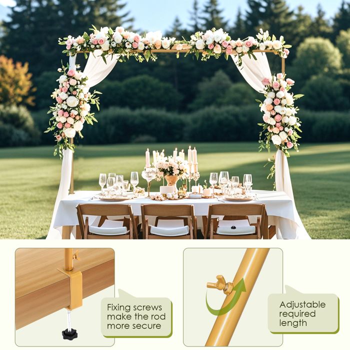 Support Arche Table Métal Arche Table Decoration Support De Barre De Table Avec Pinces, Réglable De 129 à 254 Cm De Long, En Métal Noir, Décoration Pour Mariage, Anniversaire, Fête, Noël Arche De Table Structure Métal Polyvalente Décoration Fête Table De Bar Extensible, Table Pivotante Avec 1 Tiroirs Et 2 Portes En Verre Etageres En Bois Blanc Et Naturel 99397889 Arche de Table Extensible Or, Tige Décorative de Table avec Pinces, 120CM-260CM, pour Noël... Spécification: Nom: Table Arc StandMatériau: métalTaille du produit: environ 280x100cm / 110,24x39., 37 poucesStyle: comme indiquéListe de colisage:1 * table de table de table Avertissement De Sûreté N'est pas applicable Flexibilité d'Usage: Grâce à son adaptation aux espaces intérieurs et extérieurs, cette tige de table supporte les thèmes diversifiés incluant mariages, Halloween et Noël, ajoutant une touche visuellement attractive et utilitaire à vos installations événementielles spéciales. Installation facile : Ce support de tige de table permet un assemblage manuel sans effort avec serrage par colliers, offrant une structure stable pour organiser efficacement vos matériaux lors d'activités créatives ou de projets. Il peut résister à une certaine quantité de poids et est facile à assembler - il suffit de fixer les tiges à la main. Idéal pour gaines de câbles ou accessoires. Antirouille Sophistiqué : Doté d'une résistance à la , l'arceau de table ajoute une touche de sophistication aux banquets et événements, créant des arrangements visuels mémorables au charisme et intemporel. Intégration Parfaite: Dessinée pour s'accorder avec toutes les décorations, l'arche de table améliore les projets en combinant facilement ballons et guirlandes, des résultats esthétiquement plaisants pour les célébrations ou les aménagements intérieurs Barre de table – lerendezvous.boheme