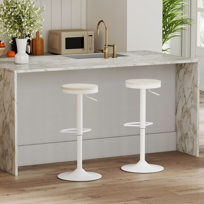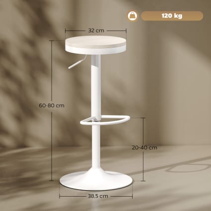 recommandée : 120 kg● Réf. Contenu de L'Emballage: STABLE ET SÉCURISÉ : Reposez-vous en toute assurance sur un cadre en acier solide et une base ronde équipée d'un anneau en caoutchouc antidérapant qui protège les sols et atténue les bruits. totales : 38,5l x 38,5P x 60-80H cm● Dim. HOMCOM Tabourets De Bar Modernes, Ensemble De 2 Chaises De Bar De Cuisine Pivotantes Blanc Creme 83A-282V00WT● Note: Si vous souhaitez la reprise de votre ancien produit, merci de consulter nos CGV sur les modalités de reprise et de nous joindre via la messagerie. Montage rapide de 15 minutes pour transformer votre cuisine en un espace accueillant. FONCTION PIVOTANTE : L'assise de cette chaise de bar pivote à 360 degrés, offrant la liberté de changer d'orientation à tout moment. Parfait pour interagir... INSTALLATION RAPIDE : Gagnez du temps avec une conception intelligente permettant un montage facile en solo en seulement 15 minutes, idéal pour métamorphoser rapidement votre cuisine ou bar personnel et profiter d'un espace séduisant et fonctionnel avec des tabourets de bar pivotants. L'assise en bois massif et le cadre en acier ajoutent une élégance sophistiquée. ÉLÉGANCE NATURELLE : Découvrez la chaleur d'une assise en bois massif et d'un cadre en acier fin, qui rehaussent le décor de votre intérieur avec une élégance raffinée tout en ajoutant une touche rustique qui inspire bien-être et joie au quotidien avec des tabourets de bar. Table De Bar Tabourets De Bar Hauteur Réglable Pivotants Avec Repose-pieds Blanc Homcom | Maisons Du Monde Tabourets De Bar Pivotants L'assise rotative à 360 degrés permet des conversations sans effort · La hauteur de l'assise ajustable de 60-80 cm s'adapte aisément à tout bar ou comptoir... RASSEMBLEMENT POLYVALENT : Intégrez harmonieusement style et fonction avec ces tabourets hauts qui se prêtent à divers environnements, des bars matinaux animés aux coins bar familiaux chaleureux, rendant chaque repas et chaque échange fluides et stimulants avec cet ensemble de tabourets pour cuisine.