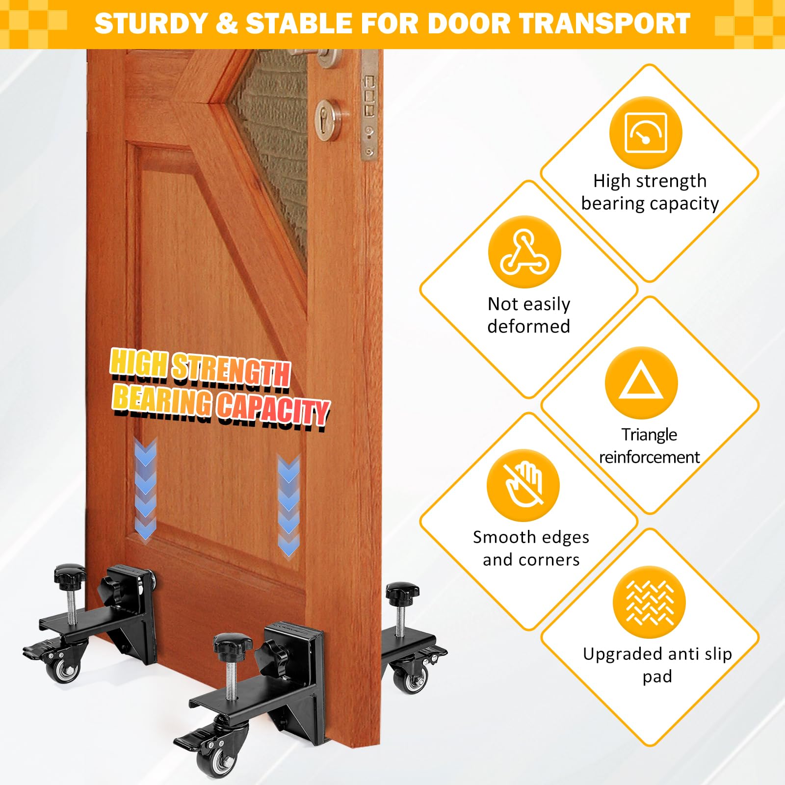 Cadre en acier stable : ce support de porte adopte une structure triangulaire compacte soudée pour une résistance accrue. Le chariot de levage de porte supporte jusqu'à 80 kg, ce qui le rend adapté pour les portes intérieures légères et les panneaux extérieurs lourds. Rend l'installation de la porte plus facile que jamais Vous en avez assez de lutter pour soulever ou déplacer des portes lourdes par vous-même ? Notre chariot de porte robuste est conçu pour simplifier chaque étape d'installation et de mouvement. Avec un cadre en acier robuste et un ajustement réglable pour panneaux de 25 à 45 mm, il vous donne le pouvoir de soulever, d'aligner et de transporter les portes en toute sécurité et sans effort. Chariot Levage Porte Lot De 2 Chariots De Porte Réglables Avec Roues Rotatives, Capacité De 227 Kg, Convient Aux Portes De 25 à 60 Mm, Kit D'installation De Porte Robuste Pour Usage Résidentiel Et Commercial Support Panneau Porte 25-45mm Design solide et réglable. Utilisez-le comme outil de suspension de porte fiable pour terminer les travaux plus rapidement, plus sûrement et avec moins d'effort. C'est le kit d'installation de porte parfait pour les panneaux lourds en bois ou en métal, vous aidant à économiser des efforts et à travailler efficacement. 【Utilisation polyvalente】 Ce déménagement de panneau de porte est pratique pour les professionnels et les bricoleurs. Lot De 2 Chariots De Transport 35x50 Cm Capacité 800 Kg Plateau Contreplaque Surface Antiderapante Roulettes En Pp Ideal Pour Meubles Et Demenagement 91194667 Chaque roue a un loquet de verrouillage pour maintenir votre porte fermement en place lorsque vous soulevez ou accrochez, assurant un meilleur contrôle et précision pour les charpentiers et les bricoleurs. Idéal pour la fixation de porte, le déplacement de meubles et l'installation de panneaux, ce kit d'installation de porte est un incontournable pour les constructeurs, les installateurs et les propriétaires. Un incontournable parmi les outils d'installation de porte et les outils de suspension de porte, rendant chaque tâche de levage plus facile et plus sûre. Parfait pour un positionnement précis lors de la suspension de porte ou des tâches d'installation. Chariot D'installation De Porte 2 Pièces, Kit D'outils D'installation De Porte En Acier Robuste Avec Roues Pivotantes à 360 Degrés Avec Freins, Chariot De... Lot De 2 Chariots De Porte - Outil D'installation De Porte Robuste, Chariot Convient pour les portes de 35 à 65 mm : le kit d'installation de porte réglable est... Parfait pour les professionnels et les projets à domicile. La surface de contact dispose de patins antidérapants qui maintiennent le panneau stable et le protègent des rayures. Fixez simplement le panneau à l'aide des boutons latéraux. Roues pivotantes à 360° : chaque chariot de porte est livré avec deux roues pivotantes à 360° pour un mouvement fluide et flexible. Capacité de charge de 80 kg : fabriqué en acier épais de haute qualité, ce chariot élévateur de porte peut supporter jusqu'à 80 kg. 【Gamme de compatibilité de 25 à 45 mm】 Cet outil de levage de porte s'adapte facilement aux panneaux de porte ou aux planches en bois d'une épaisseur de 25 à 45 mm.