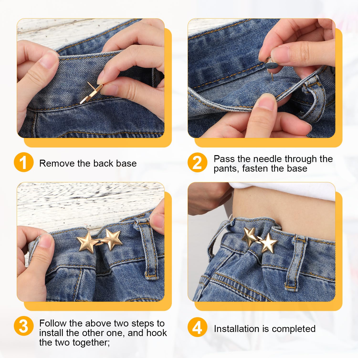 Ils apportent une décoration originale et permettent à vos tenues de se démarquer avec personnalité et modernité. Fabriqués en métal robuste avec surface lisse, ces boutons résistent à la corrosion et à l’usure. Découvrez ces boutons étoile réglables sans couture, un accessoire pratique et tendance pour vos vêtements et accessoires. Ces boutons sont spécialement conçus pour ajuster facilement la taille de vos pantalons et jeans sans avoir besoin de couture ou d’outils. Boutons Serrage Taille Jean Lot De 4 Boutons Réglables En Forme D'étoile Pour Jeans Et Boutons Amovibles Boutons étoile Mode Déco Vous pouvez serrer ou desserrer le pantalon en quelques secondes, offrant un ajustement parfait et un confort optimal au quotidien. Aucun outil ni compétence particulière n’est nécessaire. Il suffit d’insérer le bouton à la position désirée et de fixer les tendeurs de taille. Une solution rapide et pratique pour ajuster vos vêtements ou remplacer des boutons perdus. Achat Boutons célibataires jeans - Réparer soi-même ses boutons de pantalon Leur finition brillante conserve un aspect élégant même après un usage prolongé, assurant une durabilité maximale. L’installation est rapide et simple : il suffit de placer le bouton à la position souhaitée et de fixer les tendeurs de taille. 🎯【Usage polyvalent et décoratif】 Parfaits comme boutons de remplacement pour pantalons, jeans, jupes, vestes, manteaux, combinaisons, sacs ou shorts. ✨【Design étoile tendance】 Les boutons en pentagramme ajoutent une touche unique et stylée à vos jeans, pantalons, jupes ou vestes. Achat Boutons célibataires jeans - Réparer soi-même ses boutons de pantalon Boutons réglables pratiques] Ce lot contient 4 paires de boutons en métal en forme d'étoile, couleurs or, argent, noir brillant et bronze. Idéal pour... Ces boutons ne sont pas seulement fonctionnels, mais servent également de décoration créative pour vos tenues. 🌟【Boutons réglables pratiques】 Ce lot contient 4 paires de boutons en métal en forme d’étoile, couleurs or, argent, noir brillant et bronze. Que ce soit pour le quotidien, les sorties ou comme cadeau pour un proche soucieux de mode, ces boutons réglables étoile sont la solution parfaite pour allier fonctionnalité, style et durabilité. Idéal pour ajuster la taille de vos pantalons et jeans rapidement, sans couture, pour un confort personnalisé au quotidien. 🔧【Installation facile sans couture】 Aucun outil ni compétence en couture n’est nécessaire. Ces boutons sont extrêmement polyvalents : ils peuvent être utilisés sur pantalons, jeans, jupes, vestes, manteaux, combinaisons, shorts, sacs en denim et autres accessoires.