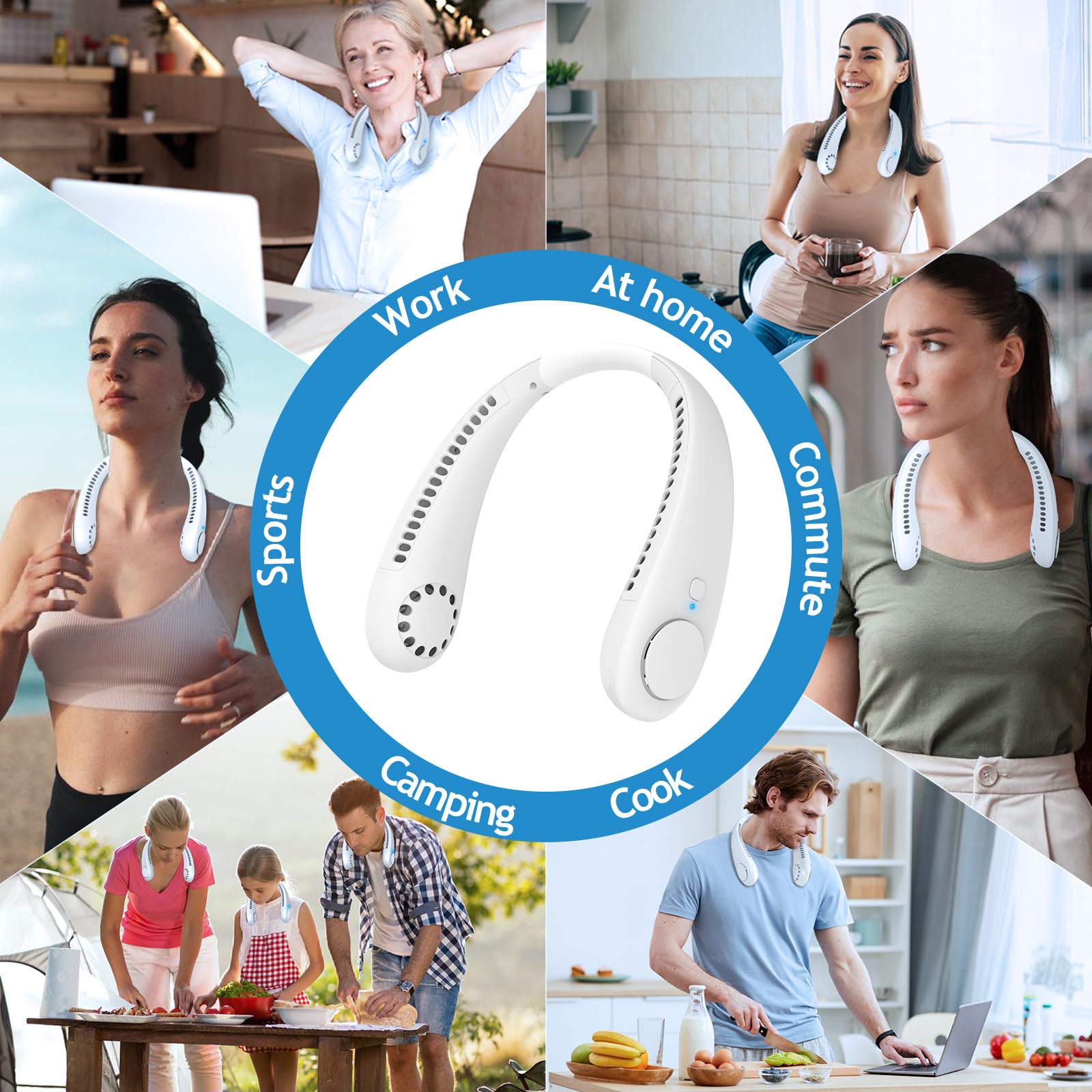Ventilateur 360° Silencieux Bureau Ventilateur Portable, 3 Niveaux Réglables Ventilateur De Cou Sans Lame Rechargeable Par Usb Mini Climatiseur Personnel Silencieux Ventilateur De Cou,Portable USB Ventilateur De Cou Sans Lame Silencieux Avec Flux Dair A 3603 Vitesses Rechargeable Mini Ventilateur Personnel Pour Bureau Domicile Voyage En Plein Air 89490289 Mini ventilateur de cou USB portable, flux d'air 360°, rechargeable, sans pales, pliable, idéal pour voyages,intérieur et extérieur ; i. Livré entre le 07/01 et... 【Portable pliable et design ergonomique】 Corps léger pliable pour le rangement. Se glisse facilement dans un sac de transport ou une valise. 【Fonctionnement silencieux niveau bibliothèque】 Technologie 35 dB garantissant un environnement paisible, ailettes de refroidissement doubles améliorant le flux d'air. 【Sensation de vent puissante à 360° et réglage en 3 vitesses】 Conception à 4 turbines et double flux d'air pour un refroidissement enveloppant. Fraîcheur silencieuse pendant le travail, les études ou la détente. 【Autonomie prolongée】 Batterie grande capacité pour plusieurs heures d'usage. 【Sécurité anti-chevaux emmêlés & multi-usages】 Grille de protection optimisée évite coincement. La dernière conception améliorée avec une couverture complète de six canaux de climatisation surdimensionnés, 20 fois plus de flux d'air que les ventilateurs de cou traditionnels et jusqu'à 6000r/min de vitesse