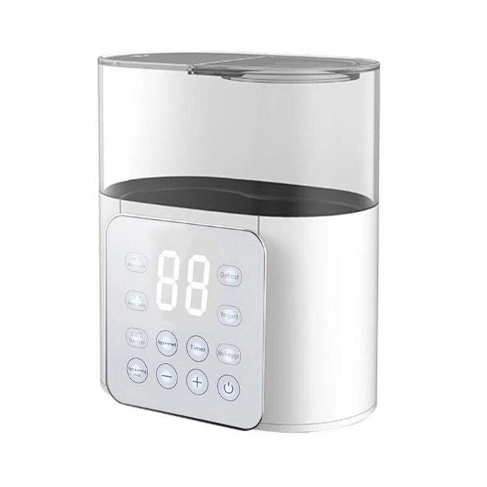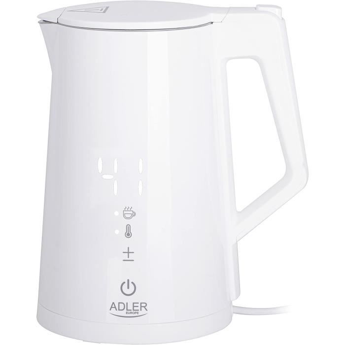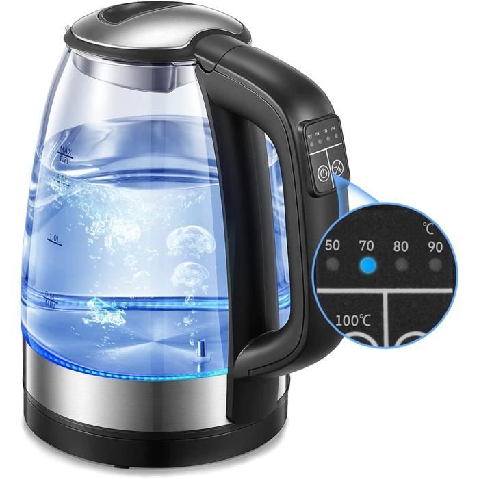 Puissance nominale : 600 W Plage de température : 37-95 ℃/98,6-203 ℉ Temps thermostatique : 72 h Temps de stockage : 5 min. Bouilloire avec température réglable Sûr et sain : câble d'alimentation épais de 2,3 m, protection anti-incendie sèche et protection contre la température assurent une sécurité élevée, de sorte que vous pouvez l'utiliser en toute confiance. Chauffe-biberon Numérique LED Maintien 72h Bouilloire Avec Réglage De La Température (Bouilloire En Verre)[S1960 Bouilloire Pour Thé Café Biberon Fréquence nominale : 50 Hz. Tension de la fiche : 250 V 16 A Capacité : 1,3 l. Chauffe-Biberon électrique maison voiture portable USB chauffe-lait... Veilleuse : la veilleuse LED facilite l'alimentation des parents la nuit pour apaiser rapidement un bébé qui pleure. Gain de temps : la fonction mémoire (5 min) permet d'enregistrer la dernière température réglée, et la fonction thermostatique maintient l'eau pendant environ 72 heures au chaud lorsque la température de l'eau atteint la température souhaitée. Et ce que j'adore c'est qu'il est compatible avec le lait maternel. Alors vraiment c'est un cadeau qui va servir et qui va soulager les parents 1 manuel d'utilisation en anglais., Remarques : 1., Veuillez vous référer aux informations sur l'emballage du lait en poudre pour trouver la bonne température de mélange pour chaque formule., 2., Nous vous recommandons de laver l'appareil une fois par semaine, d'ajouter de l'acide citrique ou du vinaigre blanc et de le mélanger avec de l'eau pour éliminer les dépôts de calcaire., 3., Veuillez lire attentivement le manuel d'utilisation en anglais avant utilisation et respecter les consignes de sécurité qui y sont contenues. Longueur du câble d'alimentation : 0,7 m. Température et temps réglables : l'appareil dispose d'un capteur intégré avec une sonde de température sensible qui peut détecter et contrôler avec précision la température de l'eau et permet un réglage fin entre 98,6 ℉ et 203 ℉. Caractéristiques : Matériau : acier inoxydable 304, PP, verre borosilicate Couleur : blanc. Grande capacité : la capacité de 46 onces d'eau est assez grande pour répondre à vos besoins en nourriture tout en réduisant le besoin de recharge fréquente.