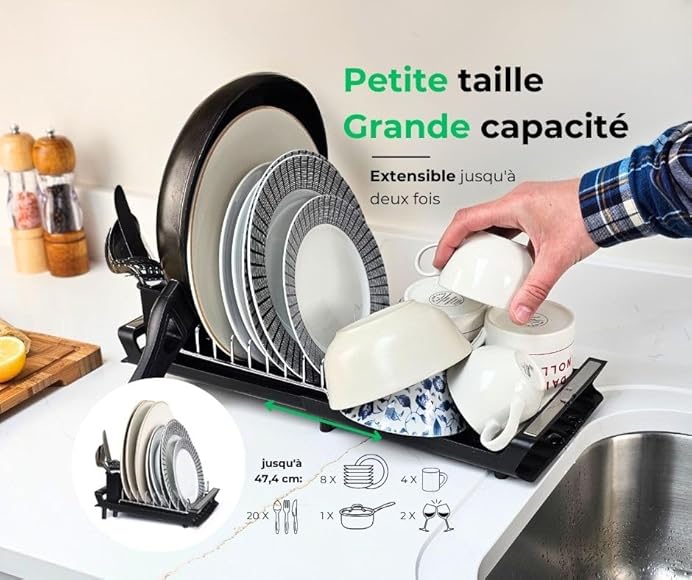 égouttoir Vaisselle Égouttoir à Vaisselle Et Tapis De Séchage En Microfibre Gris UDry - Umbra Egouttoir Pierre Absorbante Umbra - Le tapis égouttoir à vaisselle noir | Galeries de la Capitale Udry - Egouttoir et tapis à vaisselle en plastique et microfibre... Fabriqué en polypropylène résistant, le tapis léger en microfibre absorbe l'eau de séchage de la vaisselle, tout en protégeant votre comptoir des rayures et de l'accumulation d'eau. UDry est ultra-pratique à utiliser et se replie de manière compacte quand vous avez fini pour se ranger facilement dans un placard et laisser votre comptoir complétement dégagé. Ce tapis à vaisselle avec égouttoir est peu encombrant et vous permet de ranger et laisser sécher votre vaisselle proprement., Brevet en attente Cet égouttoir à vaisselle facile à utiliser peut contenir 18 assiettes, ce qui facilite et accélère le séchage de votre vaisselle. EGOUTTOIR ET TAPIS DE VAISSELLE 2-EN-1 : UDry d'Umbra combine un égouttoir et un tapis à vaisselle en un seul accessoire pour que vous puissiez empiler et mettre vos plats, verres, couverts, casseroles, poêles et autres à sécher proprement pendant que vous vaquez à vos occupations EGOUTTOIR AMOVIBLE: Polyvalent et résistant, l'égouttoir à vaisselle en plastique moulé (sans BPA) peut être facilement fixé ou retiré et passe au lave-vaisselle (panier supérieur uniquement) pour un nettoyage facile CONÇU À TORONTO : Basée à Toronto, Umbra est un des leaders mondiaux d’objets design qui sont actuellement distribués dans plus de 120 pays Udry est une solution innovante pour sécher la vaisselle rapidement et facilement. Son design polyvalent combine un égouttoir, un panier à ustensiles, un support de verres à pied et un tapis de séchage lavable en machine