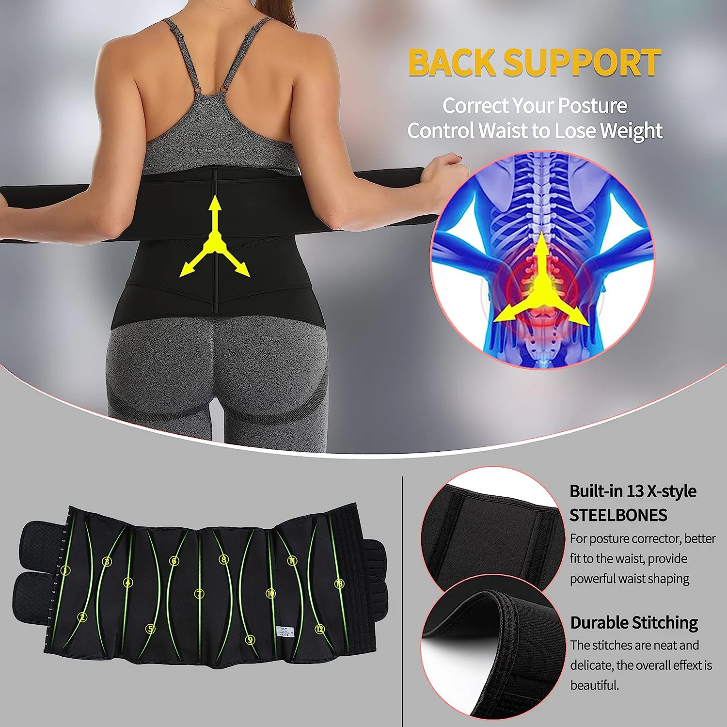 Entraîneur de taille réglable pour femme – Bandes de sudation à double ceinture pour le fitness, la combustion des graisses, l'entraînement, le sauna, le corset... La ceinture d'entraînement de la couche intérieure en tissu thermo sauna peut rapidement former une réflexion de la chaleur et une circulation de la chaleur dans l'abdomen, augmenter la température corporelle centrale, favoriser la transpiration en peu de temps et brûler les graisses Ceintures Femme Moolida Ceinture D'entraînement Pour Femme - Pour Perte De Ceinture Effet Sauna Waist Trainer Femme Ceinture Amincissante Pour Femme XFSRG - Effet