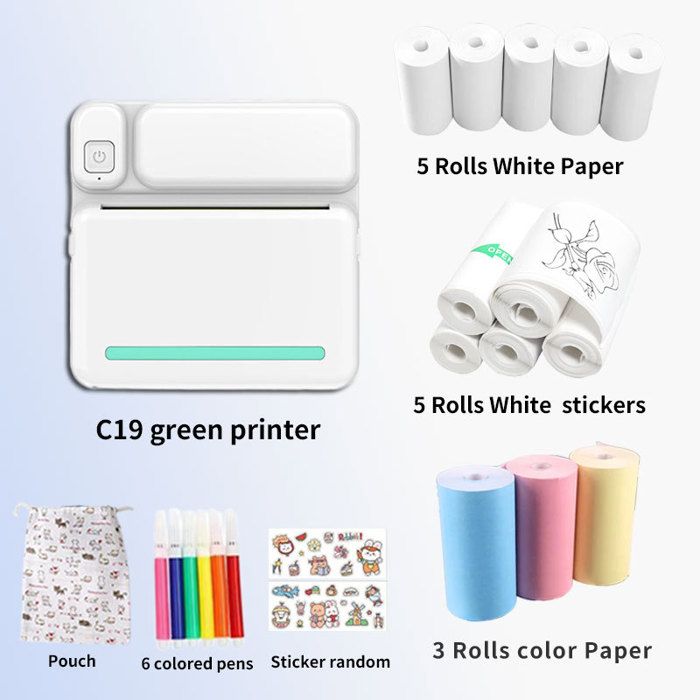 Puissance de charge : 5 V 2 A. Imprimante Design Mignon Vert Mini-imprimante Thermique Bluetooth De Poche Pour Photos, Portable Imprimante Poche Pour Notes L'application propose différents modèles, y compris des étiquettes, des listes et des messages, ainsi que différents thèmes de matériaux pour l'impression directe des images. Impression thermique : cette imprimante utilise la technologie d'impression thermique sans encre, ce qui signifie que vous n'avez besoin que de papier pour commencer l'impression. Fonctionnalité riche : avec l'application d'impression for FUN, vous pouvez facilement imprimer en une seule touche, ce qui vous permet d'économiser du temps et des efforts. Compact et portable : l'imprimante de poche dispose d'un design fin qui tient dans votre poche ou votre sac, vous permettant de l'emporter avec vous partout où vous allez. BROLEO Mini Imprimante Imprimante Thermique Multifonction 200 Méthode d'impression : impression thermique. Contenu du colis : 1 mini imprimante thermique., 1 câble de charge. Interface de charge : type C. Les photos sont propres et le processus d'impression est inodore, ce qui les rend sans danger pour les enfants. Design mignon : l'imprimante présente une apparence arrondie et un design mignon qui fera tomber vos enfants amoureux. Il peut également être utilisé pour imprimer du matériel d’étude ou des notes d’étude. Compacte et portable : cette mini-imprimante est de petite taille et légère, ce qui la rend facile à glisser dans des poches ou des sacs pour une pratique en déplacement. Il est livré avec un rouleau de papier d' intégré Mini Imprimante Thermique, Imprimante Photo Portable Sans Fil Pour... Caractéristiques : Type d'article : mini imprimante thermique portable., Matériau : ABS., Poids approximatif : 190 g. Capacité de la batterie : 800 mAh (livré avec batterie intégrée). Impression de notes d'étude : utilisez l'imprimante comme un outil d'apprentissage exclusif pour vos enfants. Enregistrez et imprimez des photos de notes pour une organisation facile, ou imprimez des documents d'étude et collez-les dans des manuels pour une révision pratique.