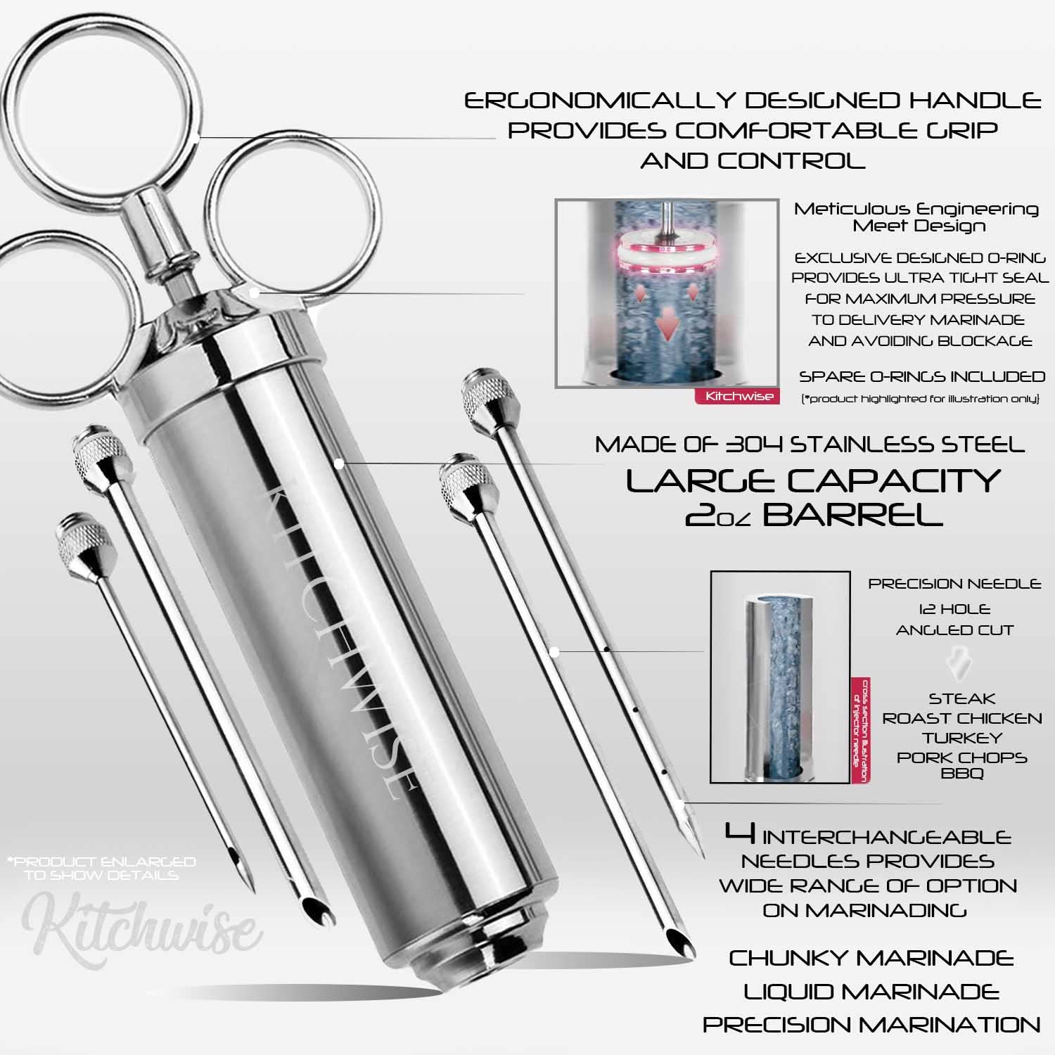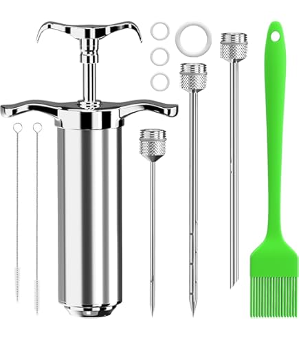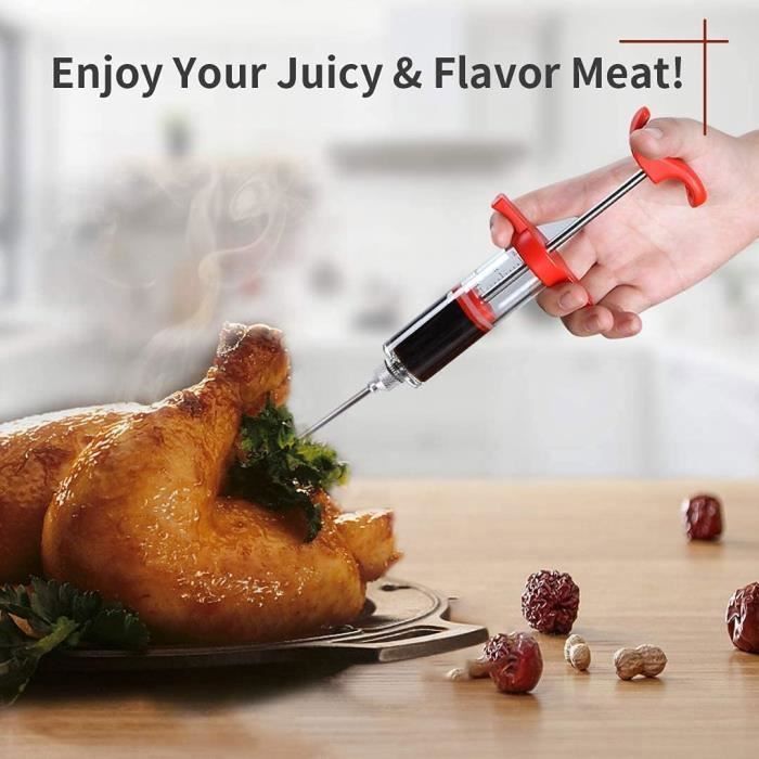 1️ Les barbecues entre amis 2️ Le poulet rôti lors de banquets 3️ Les steaks de qualité supérieure au grill ou à la poêle 4️ Les dîners de famille festifs et les barbecues Améliorez vos talents culinaires ! Insérez délicatement l'aiguille dans la viande, puis appuyez pour injecter la marinade. Pinceau à badigeonner Premium Transformez les rôtis ordinaires en chefs-d'œuvre appétissants. Solution tout-en-un pour rehausser votre barbecue, rendant chaque bouchée savoureuse et tendre. Seringue à viande, rôti et marinade pour barbecue 60 ml Injecteur avec 3 aiguilles en acier inoxydable / 1 paire de griffes à viande approuvé par la FDA... L'aiguille et la brosse sont amovibles et avec la brosse de nettoyage incluse, le nettoyage après la cuisson est sans effort. Niveaux de saveur améliorés : les marinades, les saumures ou les sauces sont injectées avec précision en profondeur dans la viande pour maximiser l'absorption des saveurs. Injecteur Marinade Seringue D'injecteur De Viande Avec 3 Aiguilles D'injecteur De Marinade Pour Barbecue Grill Kit D'injecteur De Dinde Injecteur De Saveur De Marinade Seringue Marinade Capacité 60 Ml Parfait pour les barbecues, les occasions festives ou la cuisine de tous les jours. L'injecteur à marinade haut de gamme en acier inoxydable KATLKIU imprègne la viande, la volaille et les rôtis d'une saveur riche de l'intérieur. Un outil indispensable pour les cuisiniers à domicile et les amateurs de barbecue, impressionnez vos invités avec un barbecue délicieux et exquis. Qu'il s'agisse d'un barbecue de vacances, d'un barbecue de week-end ou d'une restauration de fête, il peut être utile. Qu'il s'agisse d'un steak juteux, d'une dinde tendre ou d'un filet tendre, vous pouvez créer des saveurs de qualité restaurant à la maison. Large gamme d'applications : convient aux fumoirs, fours, barbecues extérieurs et autres méthodes de cuisson. Injecteur d'assaisonnement en acier inoxydable. Polyvalent pour toutes les occasions Qu'il s'agisse d'un barbecue dans le jardin, d'un banquet festif ou d'un dîner au steak le week-end, notre set de saucières élève chaque plat à la perfection. Polyvalent – Idéal pour le poulet, le bœuf, le porc, les barbecues et plus encore., T Description du produit KATLKIU Injecteur à marinade en acier inoxydable – Pour une viande plus tendre et plus savoureuse ! Savourez le plaisir de cuisiner – savourez le goût de quelque chose de spécial. Conseil : répartissez la marinade uniformément dans la viande pour obtenir une saveur riche., Un outil pratique. Kit De Seringues D'injection De Viande En Acier Inoxydable 304 Avec 3 Aiguilles A Marinade~p154343544 Facile à utiliser et facile à nettoyer : la poignée ergonomique de la seringue a une prise en main confortable et injecte les marinades avec facilité.