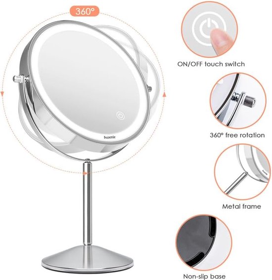 Miroir Maquillage Lumineux 20,3 Cm Avec Grossissement - Double Face 1X/10X | 52 LED Réglables | Rechargeable USB | Rotation 360°. 4.6 335 avis. Miroir... 【3 lumières de couleur et luminosité réglables】60 perles de lampe LED haute luminosité intégrées, fournissant une lumière froide, une lumière naturelle, une lumière chaude et un réglage de la luminosité, qui peuvent répondre aux différents besoins de maquillage de différentes occasions. Conseils chauds: Lorsque vous utilisez une loupe 10x, gardez votre visage à moins de 4 pouces du miroir pour éviter les étourdissements. Agrandissez les Détails Dont Vous Avez Besoin Effet de grossissement amélioré avec 10X, 1X côté régulier vous donne une vue d'ensemble, un grossissement puissant de 10X pour voir plus de détails, adapté au maquillage, à la pince à épiler, au rasage. Parfait pour une utilisation dans des zones faiblement éclairées. En outre, il peut fournir plus de luminosité de 30%. Miroir LED 3 Couleurs Lumière Miroir De Maquillage 22,9 Cm Avec Lumières, Miroir Grossissant 1x/10x Rechargeable Avec Lumière, Rotation à 360°, Miroir De Maquillage Lumineux Double Miroir Rechargeable USB 3 Couleurs Lumière blanche: Pour le maquillage du travail de bureau du matin Adopté la taille parfaite (15,59 L x 8,5 L) du miroir qui convient le mieux à l'éclairage du visage, vous permet de voir tout votre visage à la fois. (Remarque: La distance recommandée pour l'utilisation d'un miroir 10X: ≤4 pouces., ) Miroir grossissant 10X pour un maquillage détaillé tel que eye-liner, sourcil, fard à paupières, rasage et rouge à lèvres. 1X pour un look intégral de votre visage peut vérifier le maquillage terminé. Conçu avec une rotation à 360°, le miroir de maquillage avec lumières peut être librement ajusté à n'importe quel angle, ce qui rend plus clair et plus facile de vérifier votre maquillage ou vos soins de la peau. La conception rechargeable par USB signifie que vous n'avez pas besoin d'acheter ou de remplacer la batterie jetable, qui peut fonctionner en continu pendant 3 à 5 heures après une charge complète. Si vous voulez surprendre votre petite amie, votre femme, votre fille ou votre mère, préparez-lui ce miroir de maquillage éclairé avec grossissement. Le miroir de maquillage 1X haute définition reflète l'ensemble de votre maquillage du visage, de vos soins de la peau et de votre coiffure. Miroir grossissant double face 1X/10X : le miroir de maquillage double face avec éclairage est composé de verre de 20,3 cm avec grossissement x1/10x 【Rotatif à 360° et rechargeable】La conception pivotante rotative à 360° vous permet d'ajuster facilement le miroir à n'importe quel angle de réflexion dont vous avez besoin, vous donne la réflexion parfaite de l'angle de vision. Remarque: Le chargeur n'est pas inclus Imaginez à quel point elle serait ravie de voir ce nouveau miroir de maquillage dans sa chambre. Joli style moderne et élégant, le miroir de maquillage professionnel avec lumières peut être utilisé non seulement comme lampe de bureau ou veilleuse, mais aussi comme décoration élégante pour votre chambre et votre coin toilette. REMARQUE: Le 10X doit être à moins de 4 pouces du miroir de maquillage éclairé agrandi 10X. Faites pivoter l'Angle Souhaité Libérez de l'espace sur le bureau et donnez à votre pièce un aspect propre et bien rangé. Miroir de maquillage avec lumière, miroir grossissant x10 avec Remarque: Veuillez garder votre visage à moins de 4 pouces du miroir 10X pour avoir une vue dégagée. Il n'est plus nécessaire de perdre votre temps et votre énergie à sélectionner à nouveau un autre cadeau. Lumière chaude: Pour le maquillage de soirée et de club Ensemble robuste amélioré pour assurer la sécurité, contrairement à d'autres miroirs qui se brisent facilement et vous déçoivent. Et la lumière s'éteindra automatiquement après aucune opération de plus de 30 minutes pour économiser de l'énergie. Né pour la profession Configuration avancée 60 perles de lampe intégrées, miroir de maquillage fournissent une source de lumière de protection des yeux super brillante et douce. La lumière est douce, vos yeux sont protégés même avec la lumière accrue. C'est le Choix de cadeau Parfait. Miroir de courtoisie en nickel perlé, durable et attrayant. Le miroir de maquillage a une fonction de mémoire, qui se souviendra de la dernière luminosité dont vous avez besoin. Conçu avec une rotation à 360°, le miroir de maquillage éclairé peut basculer librement le miroir entre un grossissement 1X et 10X en le faisant pivoter, vous offrant un angle de vision parfait pour vous maquiller sans vous pencher ni renverser la tête. Passé plus de 10 000 fois le test de fatigue, prouve la durabilité et les propriétés non lâches de la rotation de l'arbre. Vous pouvez utiliser le miroir pour vous maquiller dans l'obscurité, les miroirs professionnels peuvent vous offrir la meilleure peau comme une star de cinéma. Aussi le meilleur cadeau pour la Saint-Valentin, la fête des mères, Noël, anniversaire ou occasions spéciales.