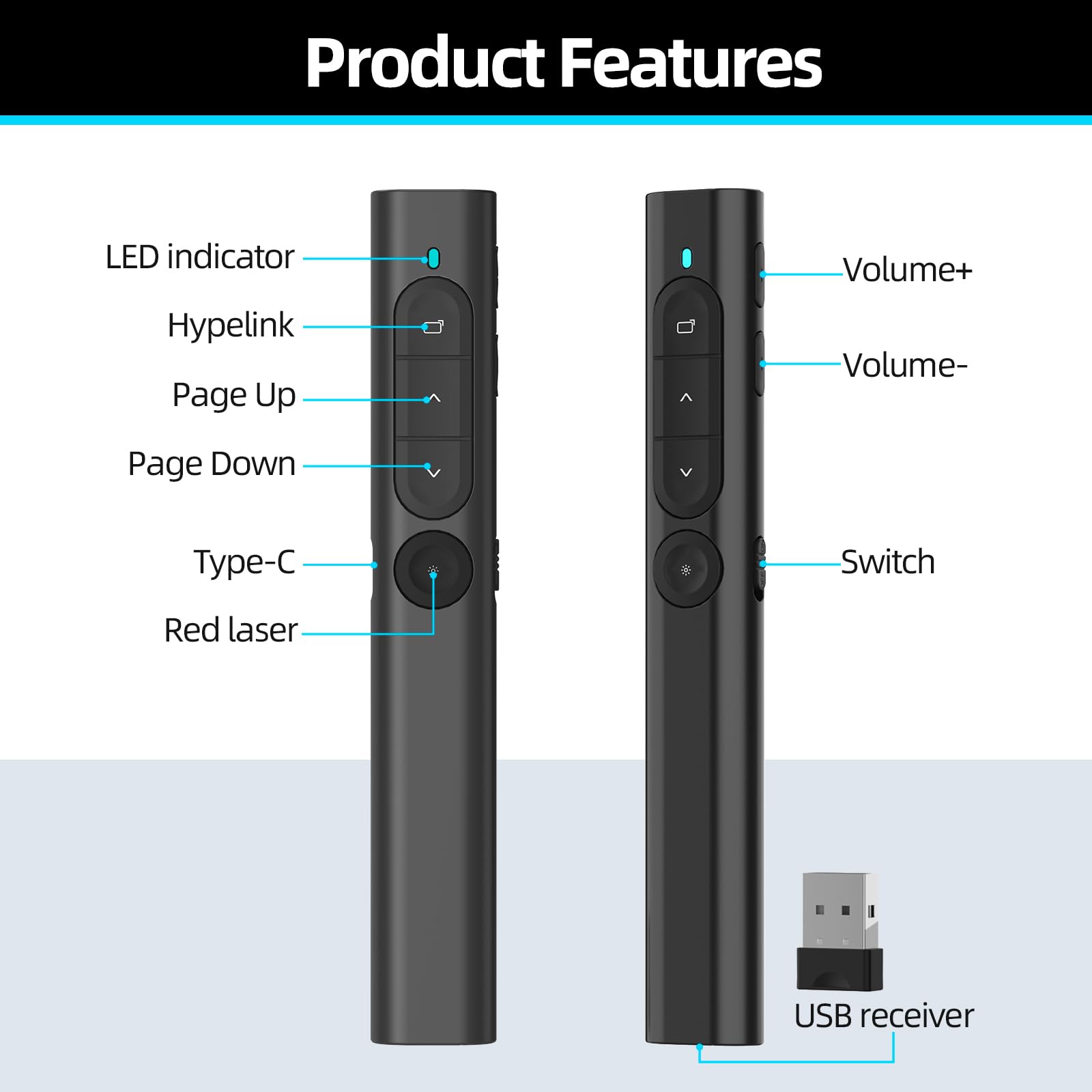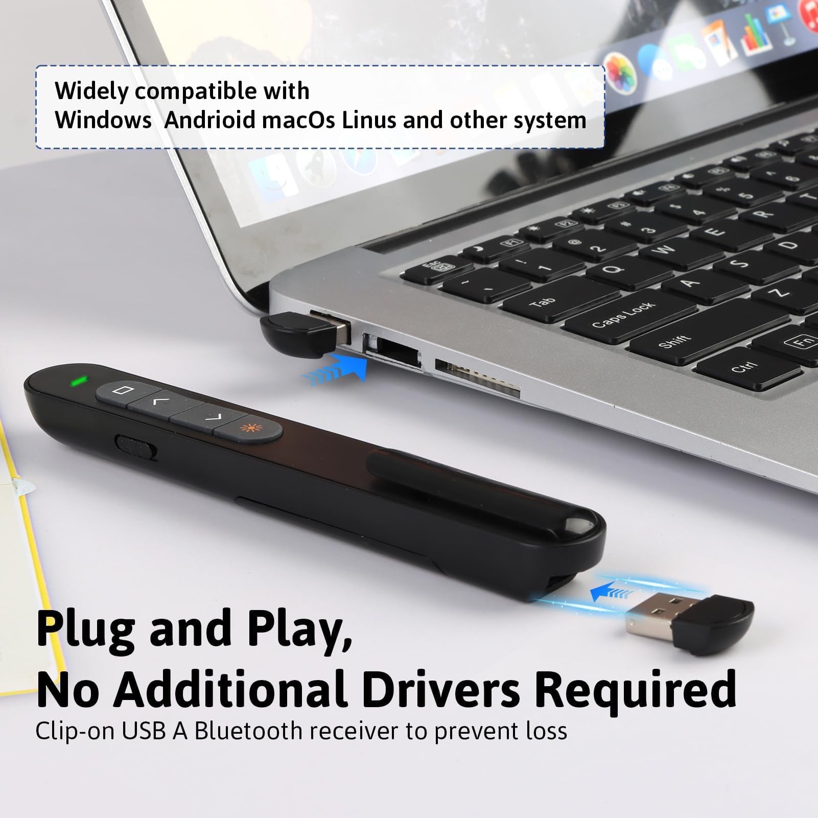 Compatible Mac Windows Android Pointeur Sans Fil 2.4ghz Télécommande Présentation Sans Fil 2,4GHz - Pointeur PowerPoint - Compatible PC/Mac - Portée 30m Laser Présentation Professionnelle Télécommande Présentation Plug-and-play Télécommande GENERIQUE Pointeur de Présentateur sans Fil USB Télécommande PPT pour Présentation Powerpoint Logitech R400 Télécommande de Présentation sans Fil, 2,4 GHz/Récepteur USB, Pointeur Laser Rouge, Portée de 15 Mètres, 6 Boutons, Commande Intuitive de... Ses boutons en silicone tactiles permettent une utilisation intuitive sans avoir à regarder l'appareil. Un logement magnétique intégré garde le récepteur USB fermement attaché, évitant ainsi toute perte. 【Compatibilité Logicielle Étendue】Compatible avec Windows, macOS, Unix et Android. 【Design Ergonomique et Sécurisé】Compact, léger et conçu pour le confort. Fonctionne parfaitement avec PowerPoint, Google Slides, Keynote, Prezi, les lecteurs PDF et plus. Parfait pour les ordinateurs portables, de bureau et tout-en-un. Déplacez-vous librement dans la pièce et maintenez l'engagement de votre auditoire sans être rivé à votre ordinateur. Conçu pour la simplicité, il fonctionne instantanément par plug and play aucune installation logicielle requise. [Design Ergonomique et Sécurisé]Compact...
