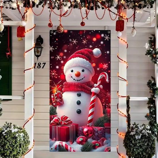 Dessin en ligne continue à l'encre de l'arbre de Noël et du bonhomme de... Bannière Web Joyeux Noël, Avec Bonhomme De Neige De Noël, Branches De 2 Pièces Décorations Porte Avant Noël Bannière, 40 x ... - Leroy Merlin
