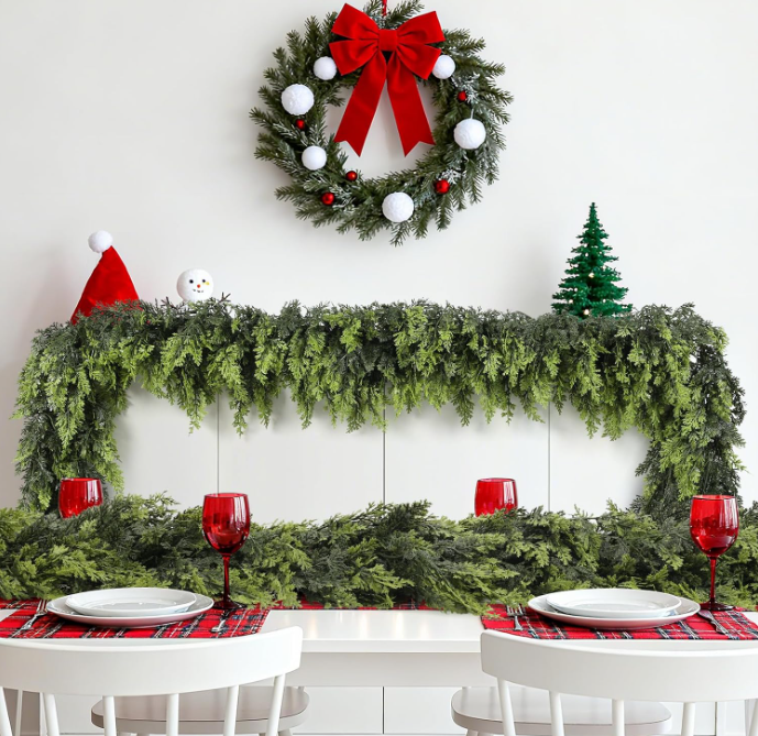 2pcs Couronne de Noël en rotin avec branches de pin vertes, douce au toucher, décoration en pin, convient aux tables à manger et aux porches (2,7 m). | Leroy Merlin En raison de différentes mesures manuelles, veuillez permettre une différence de taille de 1 à 2 cm. Escaliers 2pcs Couronne De Noël En Cèdre, Couronne Artificielle En Cèdre,1,5m, Décoration De Noël Intérieure, Convient Pour La Décoration De Cheminée | Leroy Merlin Guirlande Cèdre Porche Indispensable parmi les fournitures de fête, elle garantit une atmosphère festive agréable partout où elle est utilisée. Guirlande de Noël avec chaîne lumineuse LED éclairage 270cm Guirlande... Couronne de Noël artificielle en pin Norfolk pour porte d'entrée, 61 cm Créer une atmosphère vivante et agréable est un choix idéal pour les salles de... Apparence de Cèdre Frais: Recrée l'aspect du cèdre fraîchement cueilli avec une texture lisse et douce, en matériau PVC flexible sans sensation de raideur. Design Flexible et Durable: La structure de vigne robuste et résistante permet de façonner sans effort cette guirlande en centre de table élégant ou en décoration d'encadrement de porte, répondant aux besoins décoratifs festifs avec fiabilité Décoration festive naturelle : Le travail artisanal met en valeur les branches et feuilles aux dégradés de vert naturel, apportant une ambiance et un charme de Noël grâce à son apparence réaliste. Utilisez-la à l'intérieur sur les cheminées, les , les buffets et les salons, ou à l'extérieur sur les porches, les portes d'entrée et les espaces jardiniers. Cadeau Magnifique: Rehaussez les festivités de Noël, du Nouvel An et des anniversaires avec cette guirlande de cèdre; témoignez amour et attention tout en partageant des moments inoubliables en famille, entre amis ou avec votre partenaire grâce à cette décoration naturelle et élégante Créez des moments inoubliables cette saison avec notre guirlande en cèdre, un ajout idéal à vos décorations de Noël.